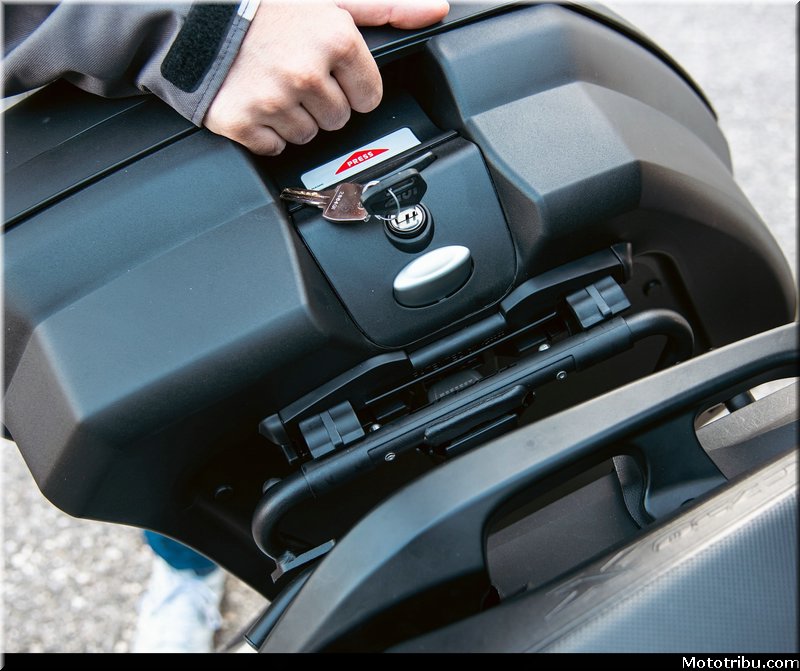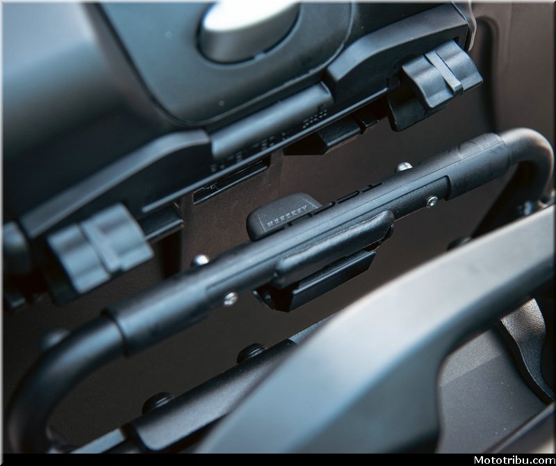 La valise est fixée en 3 points au niveau du repose-pied passager et au niveau du cadre supérieur