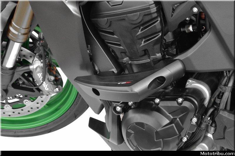 De couleur noire, l’ensemble platine + patin s’intègre parfaitement sans dénaturer la ligne du nouveau roadster Z1100.