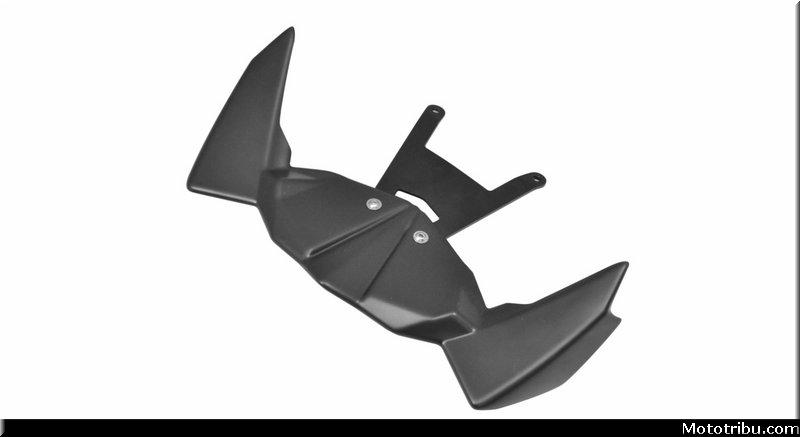 Dans les bureaux de la marque, les équipes de R&D ont imaginé plusieurs pièces aérodynamiques spécialement pour la Hornet 1000 pour former un kit composé de trois ailerons fabriqués en plastique ABS.