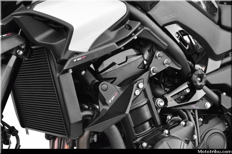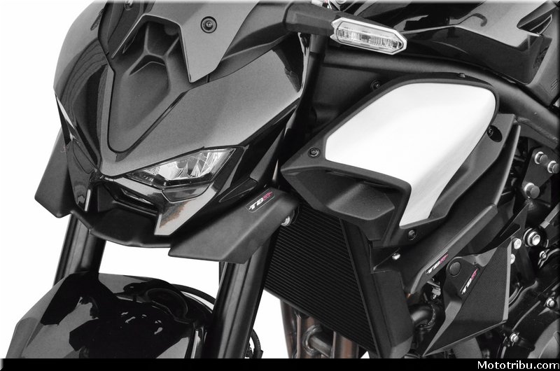 De couleur noir l’ensemble platine + patin s’intègre parfaitement sans dénaturer la ligne de la nouvelle Z900.