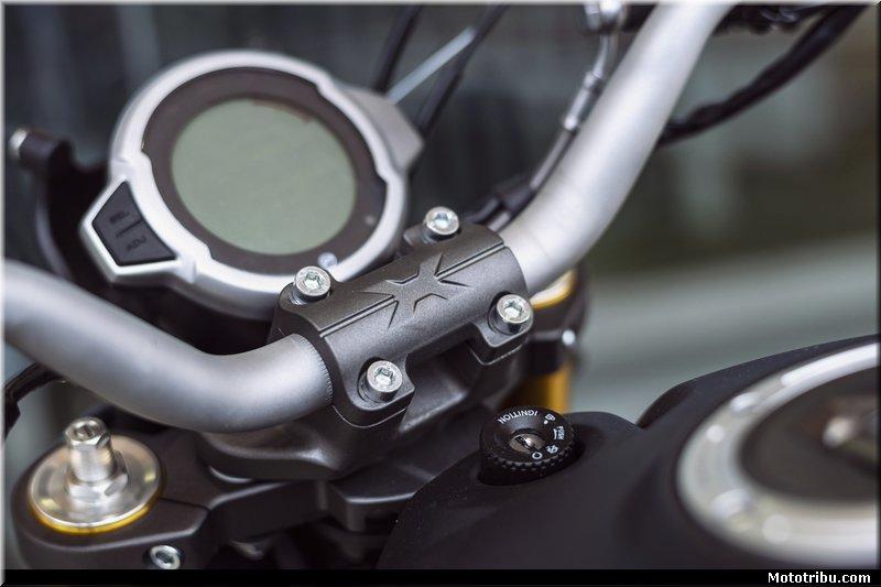 On notera enfin la monte de pneus mixtes sur des jantes à rayons, là encore parfaitement dans l’esprit et dans l’usage de ce segment scrambler.