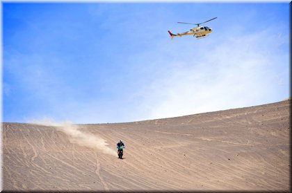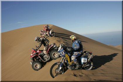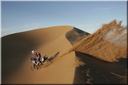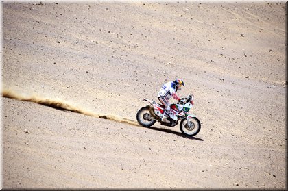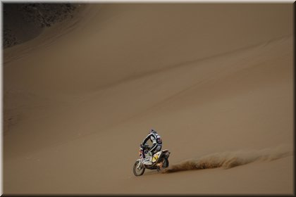 Marc Coma et Cyril Despres, partis en tête de la course motos, ont dans un premier temps payé leurs hésitations dans un imposant secteur de dunes.