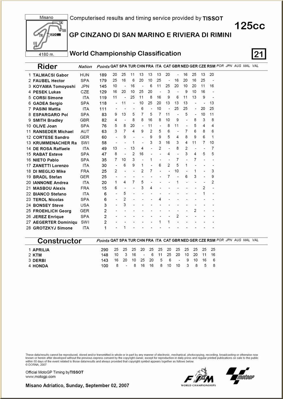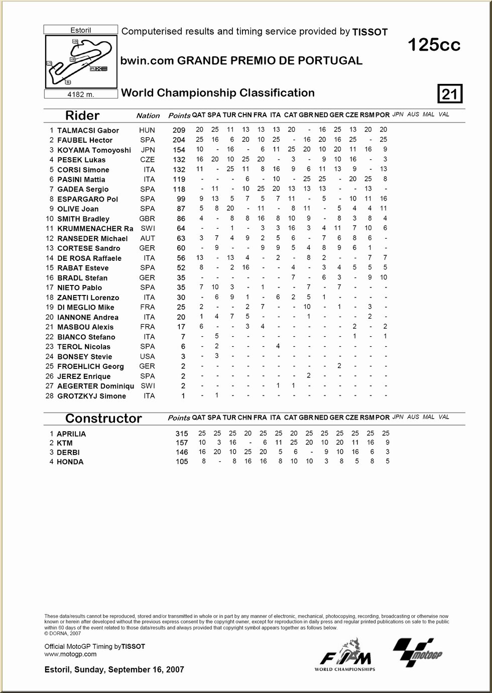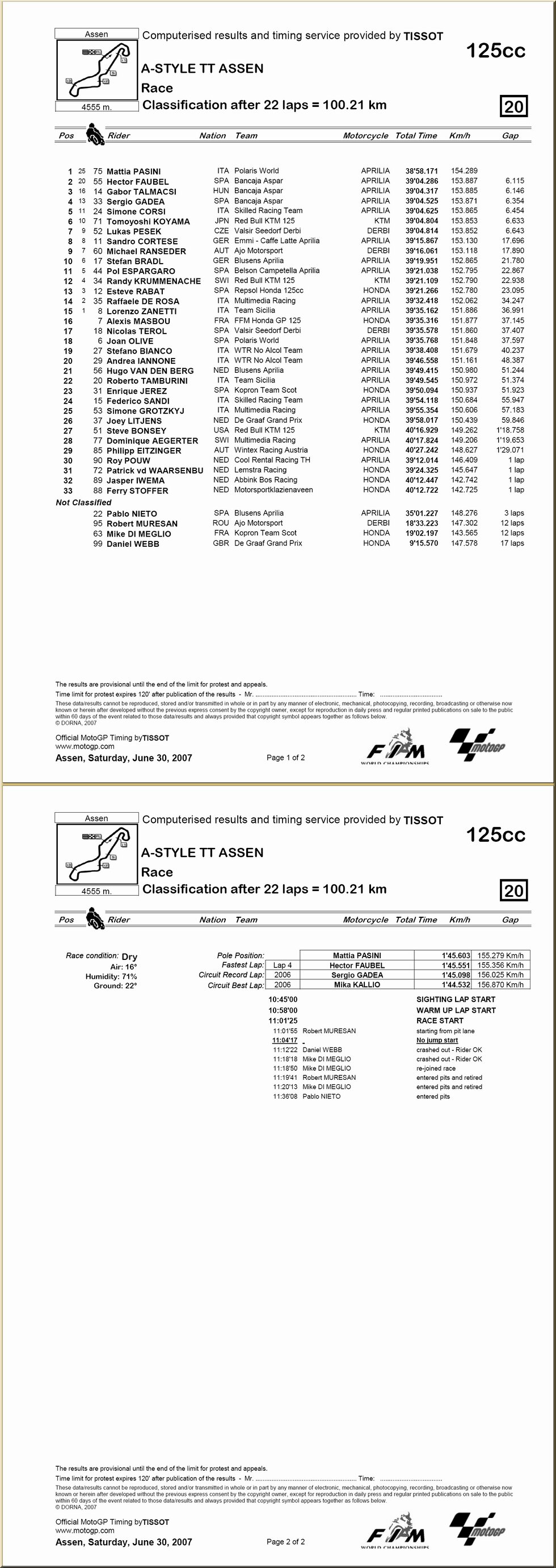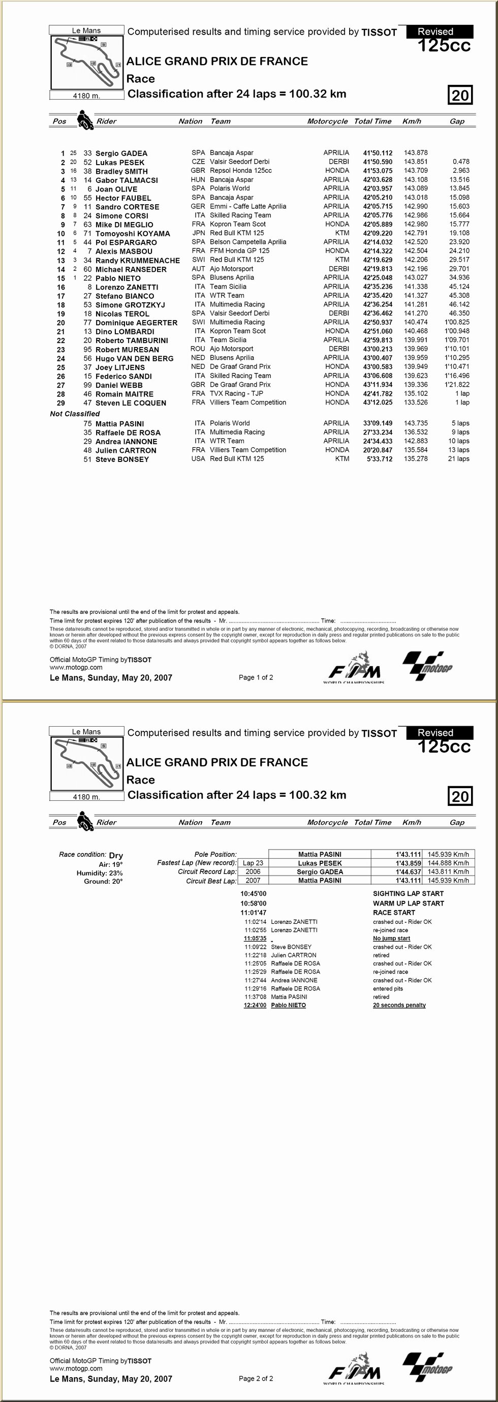 | 125 : résultat - classement |