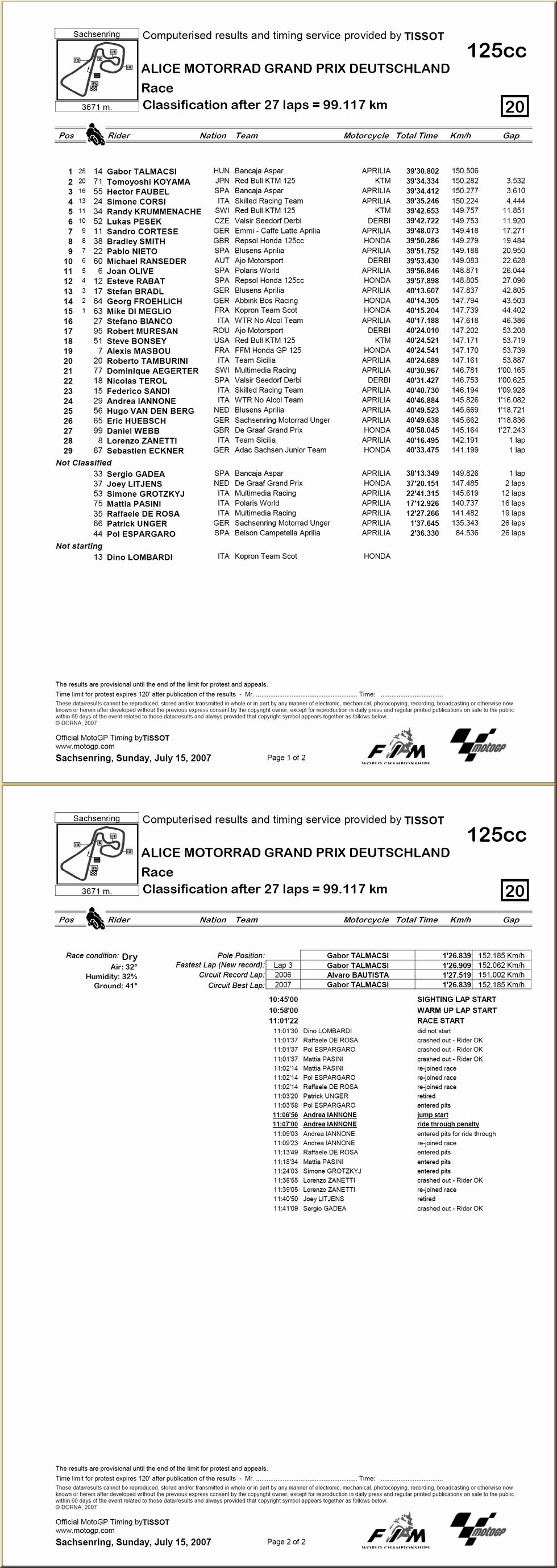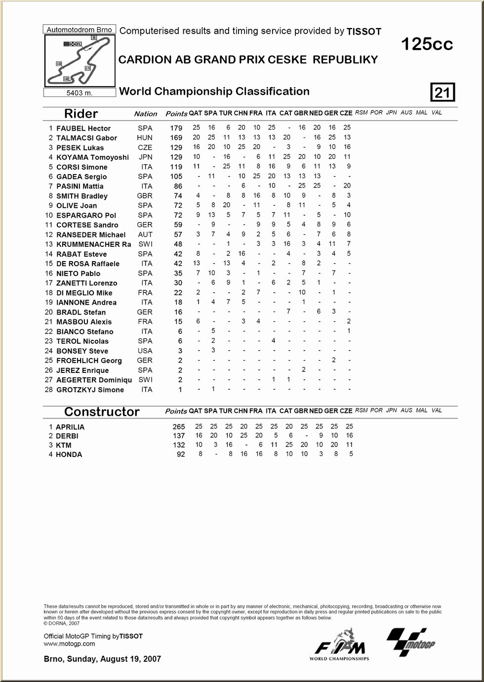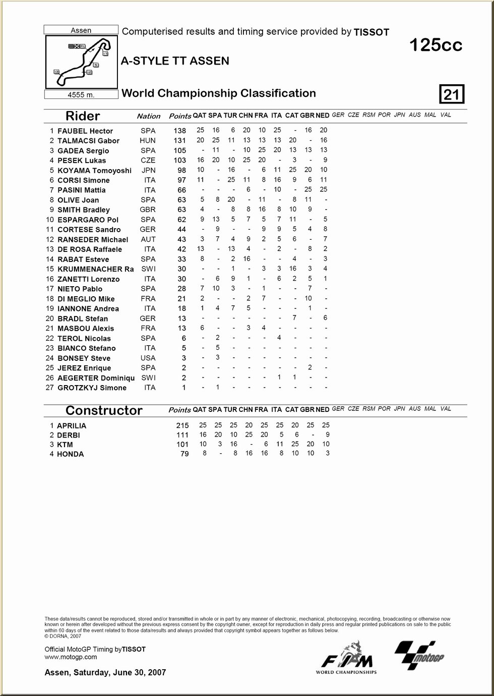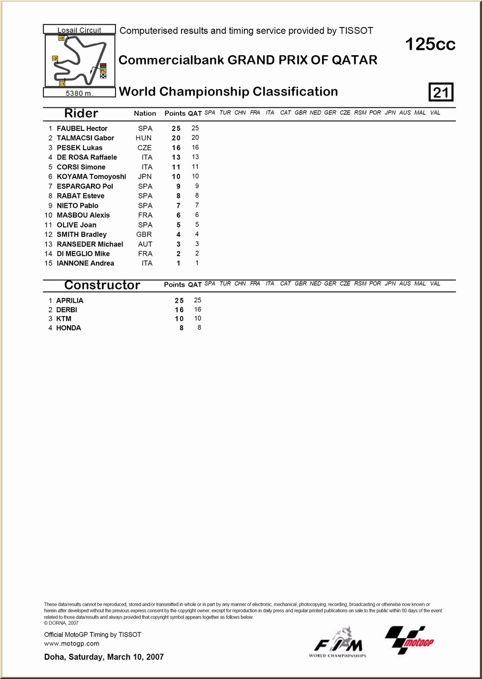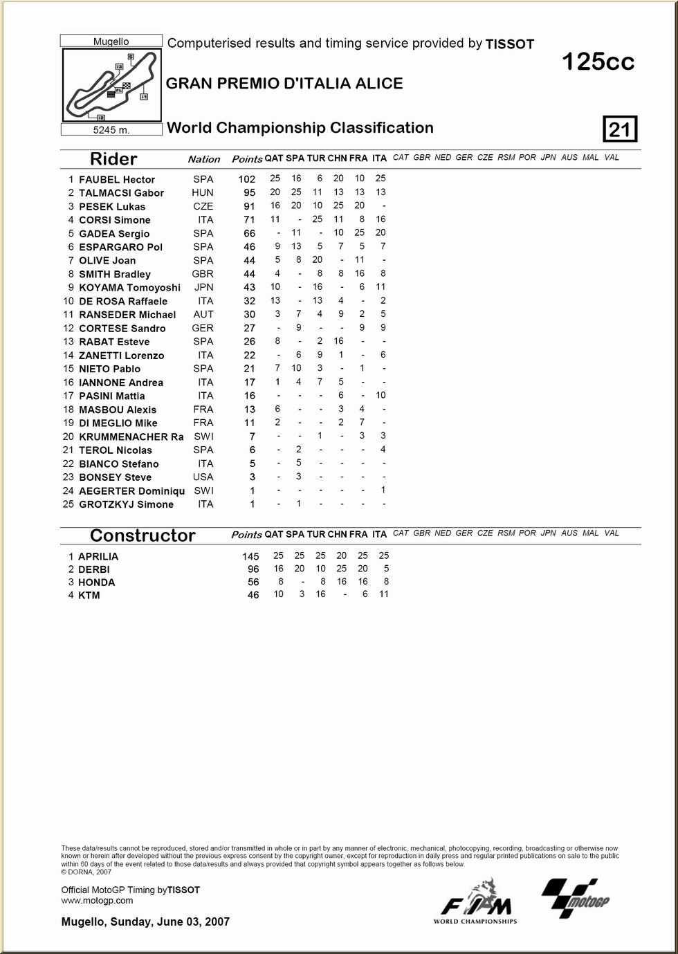 | 125 : résultat - classement |