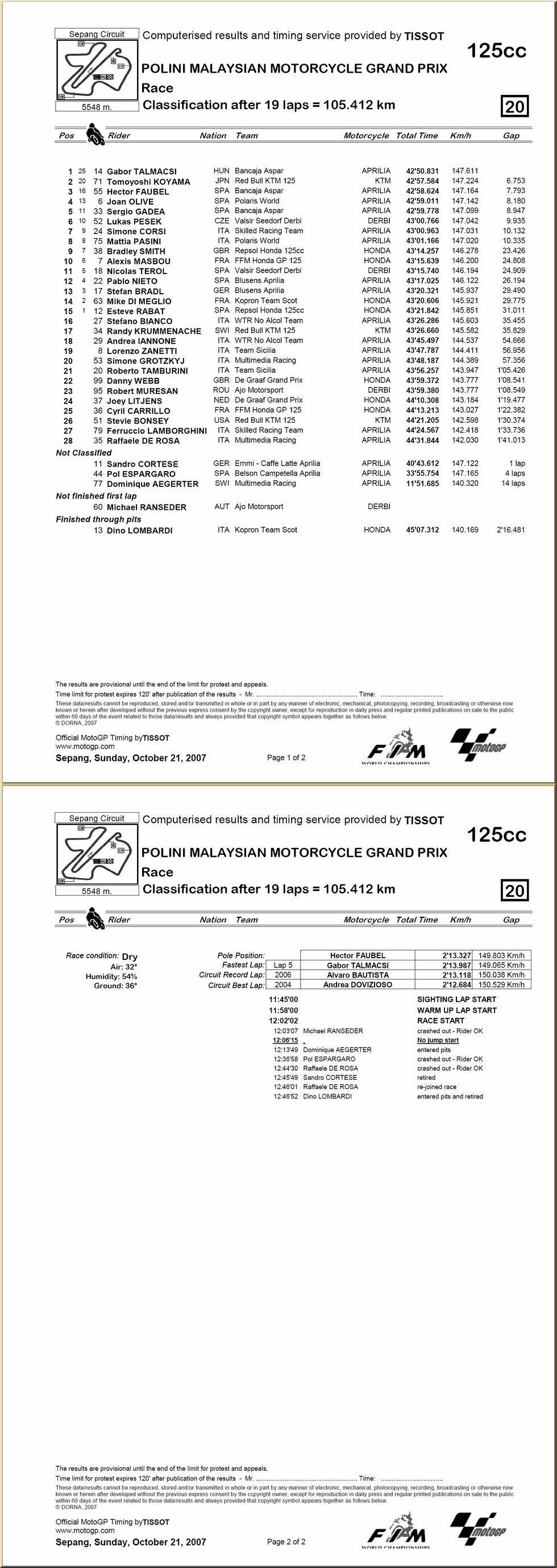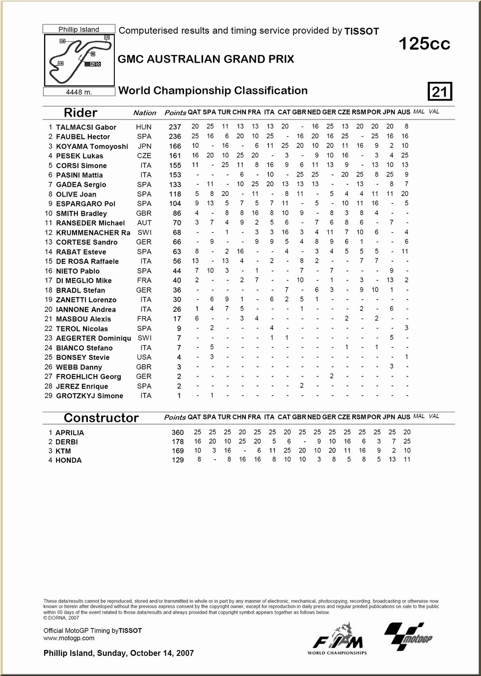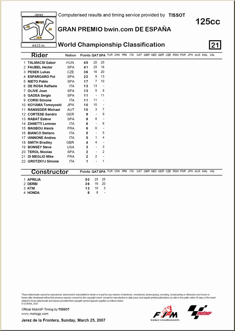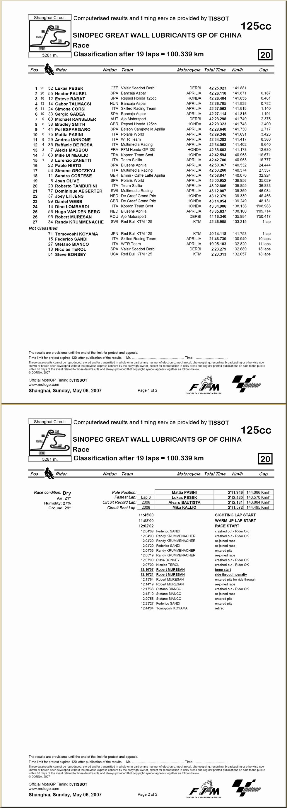 | 125 : résultat - classement |