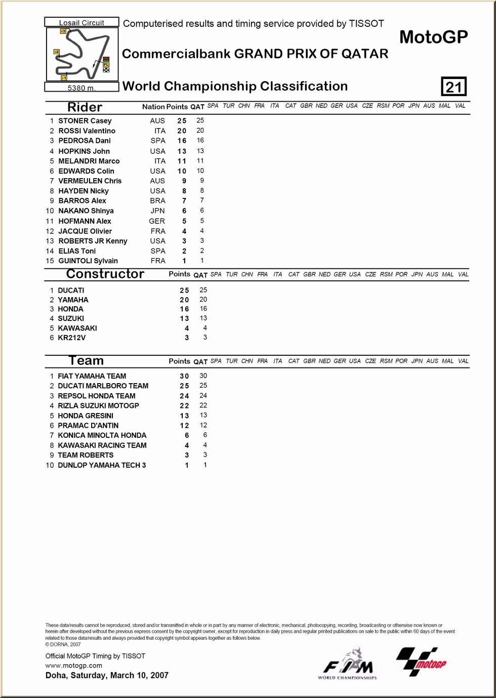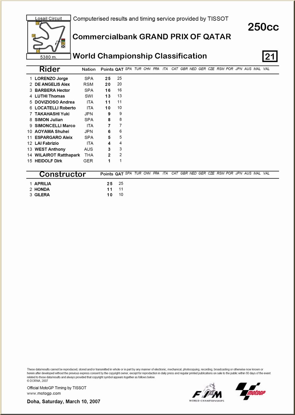 | 1. QATAR, Losail |