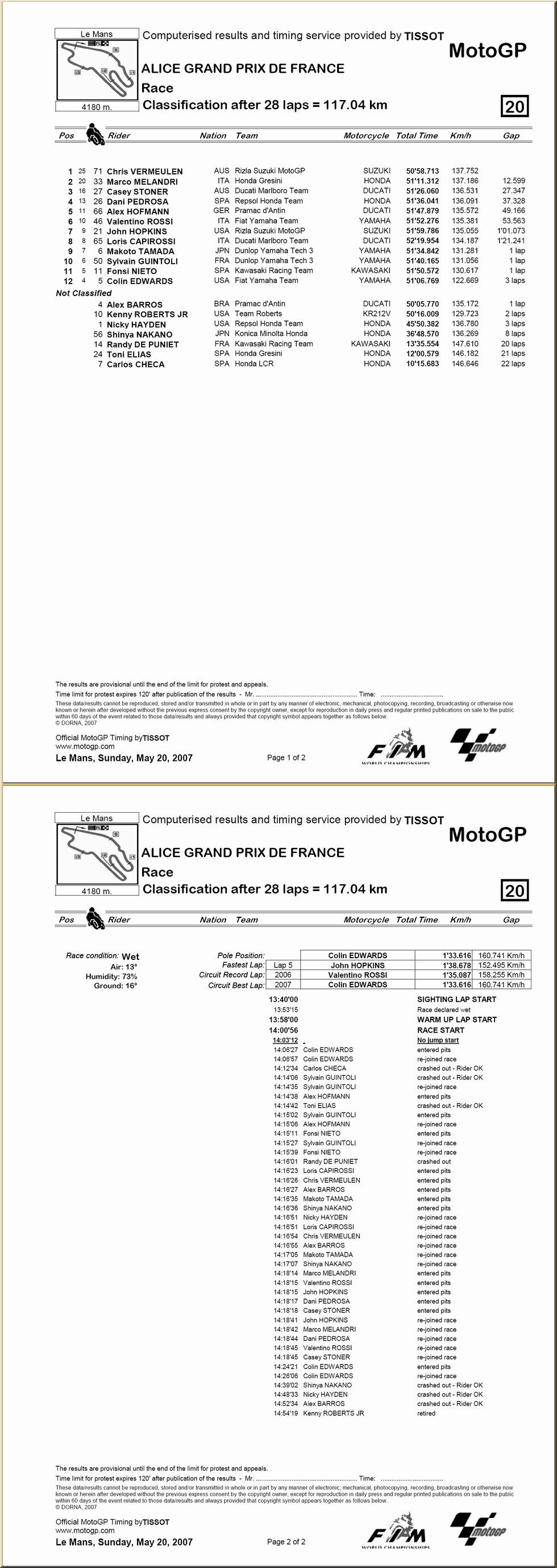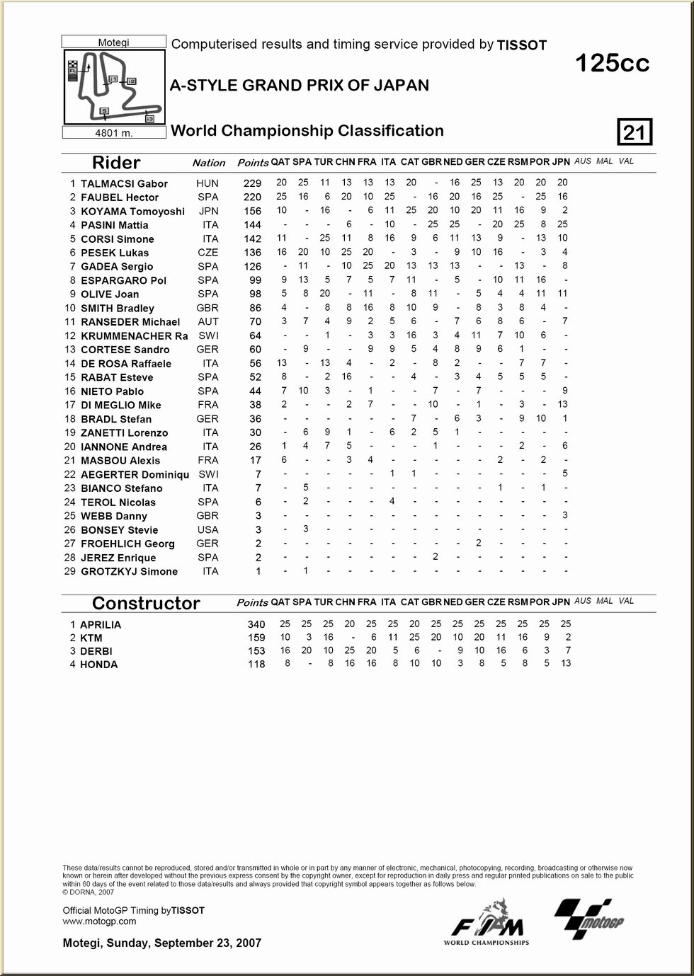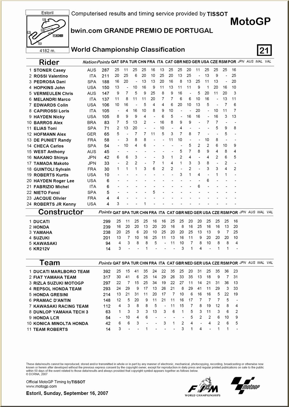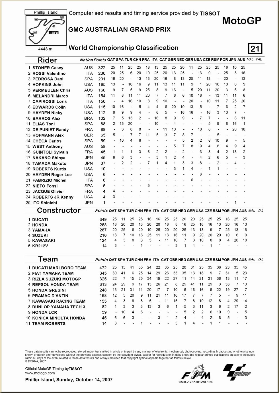 | Moto GP : résultat - classement |