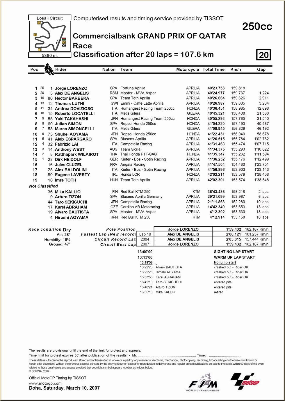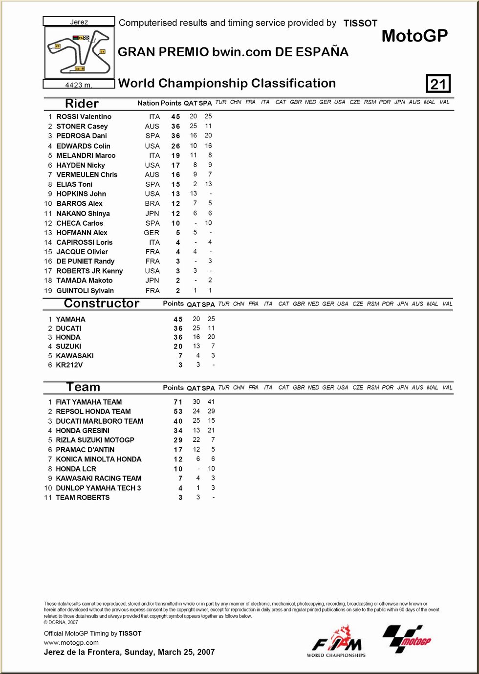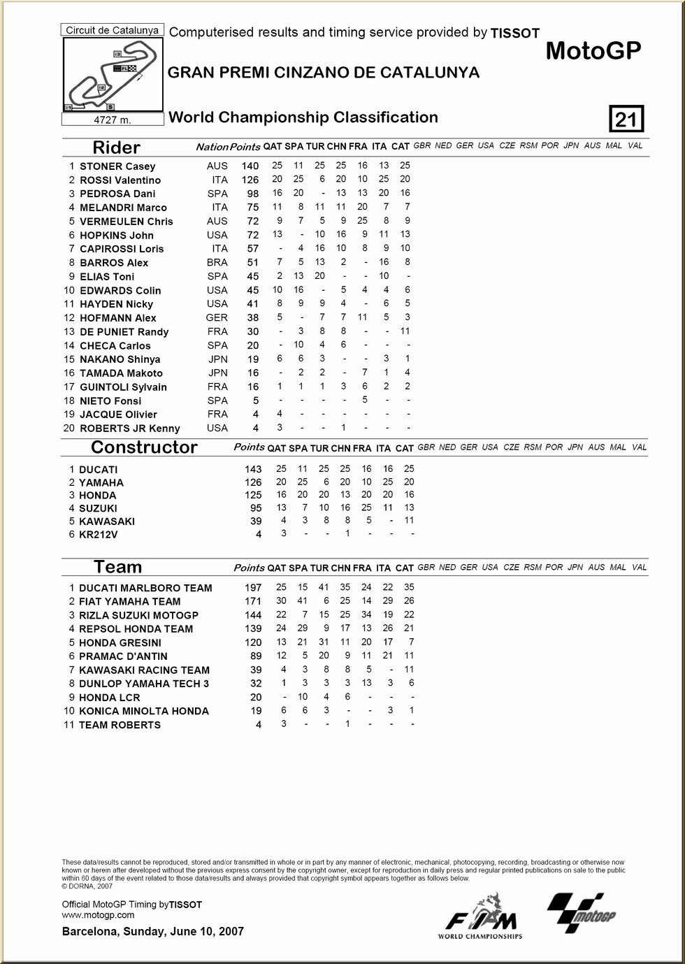 | Moto GP : résultat - classement |