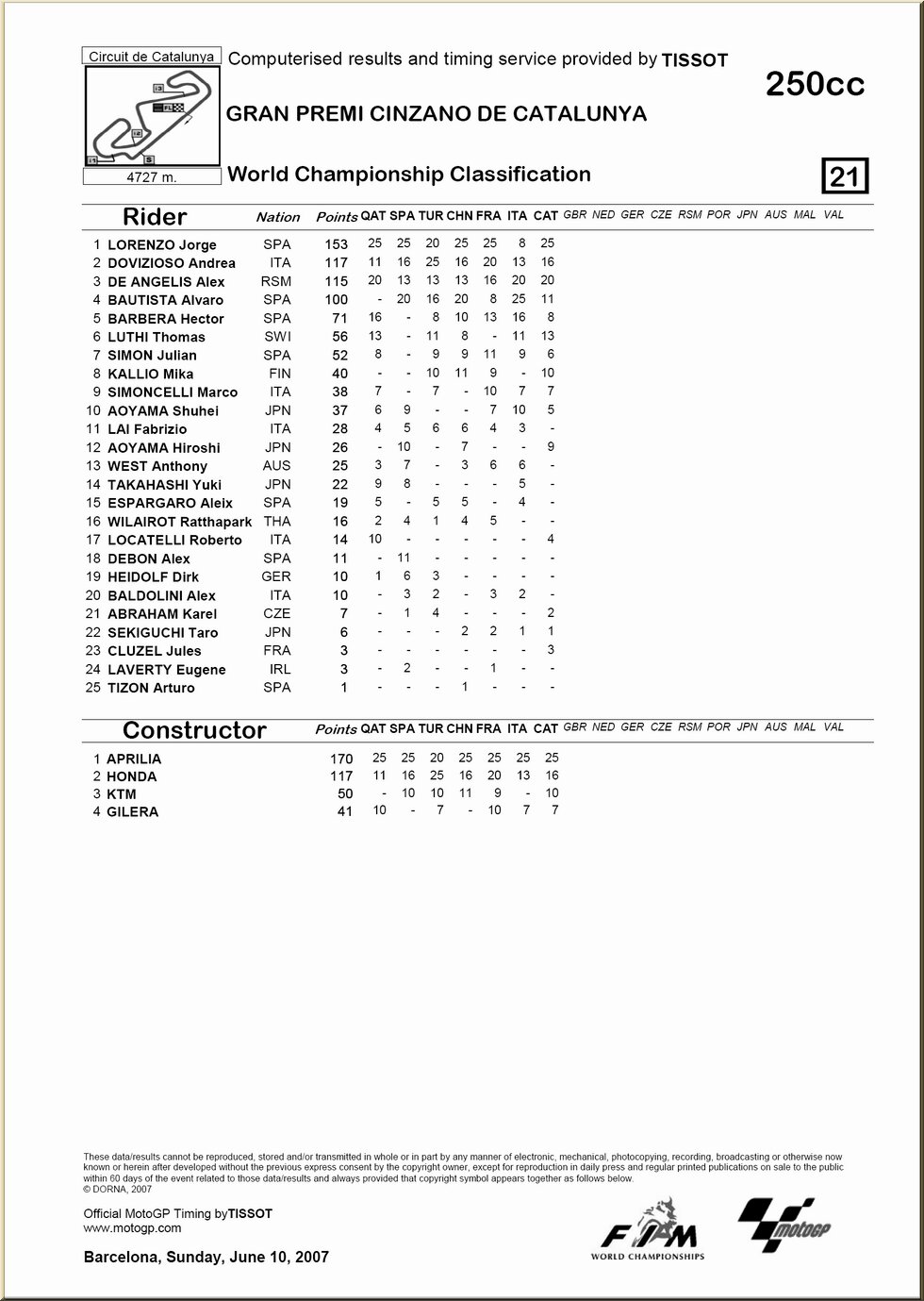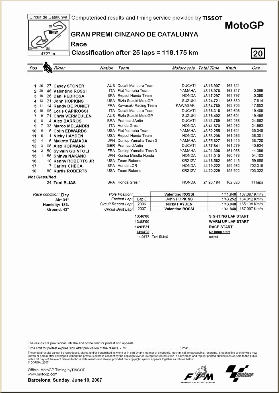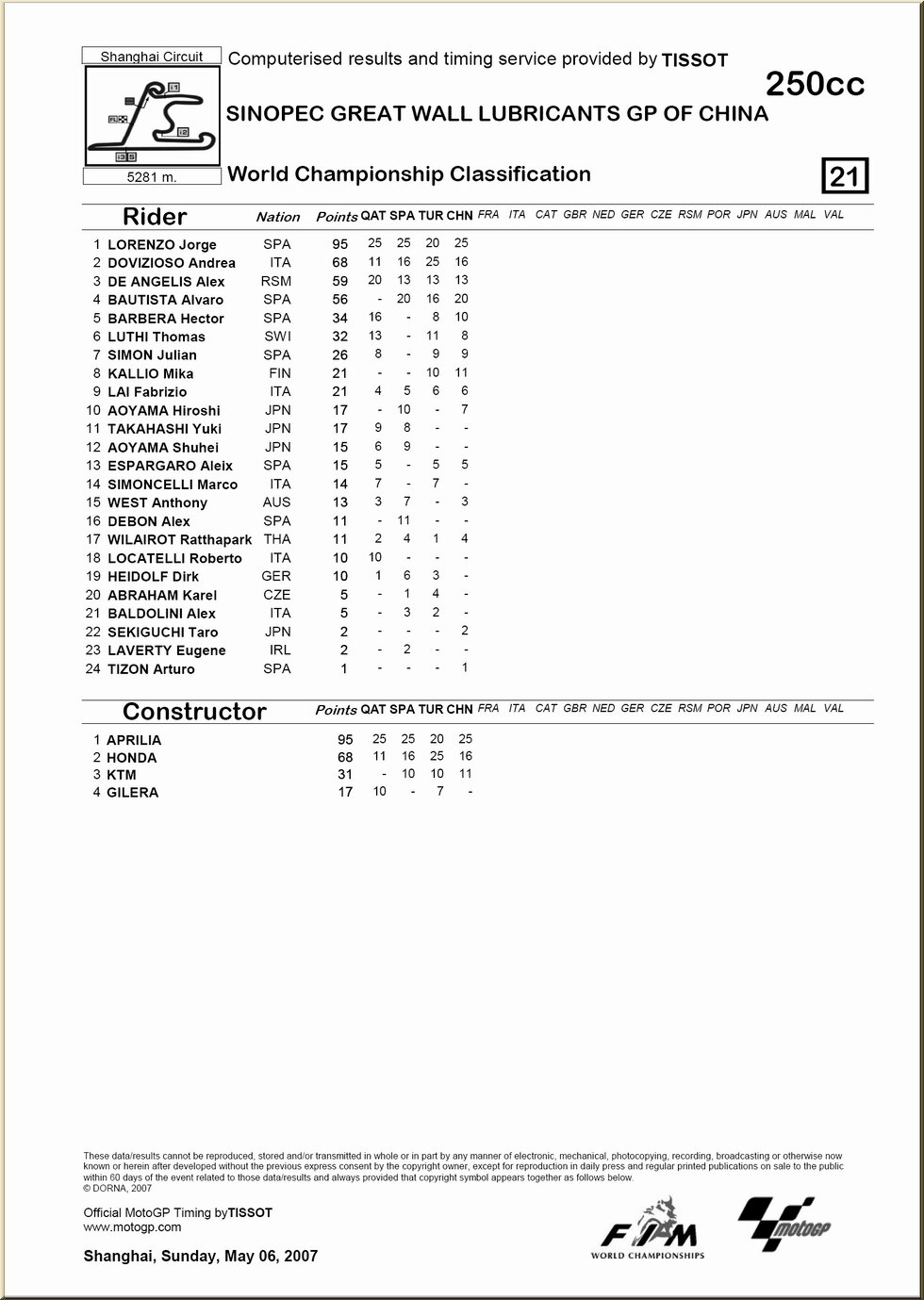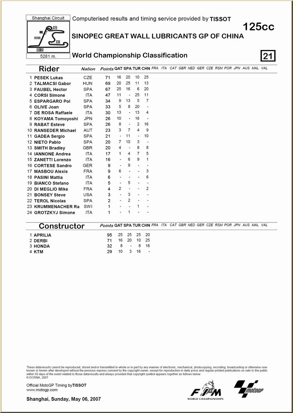 | Moto GP : résultat - classement |