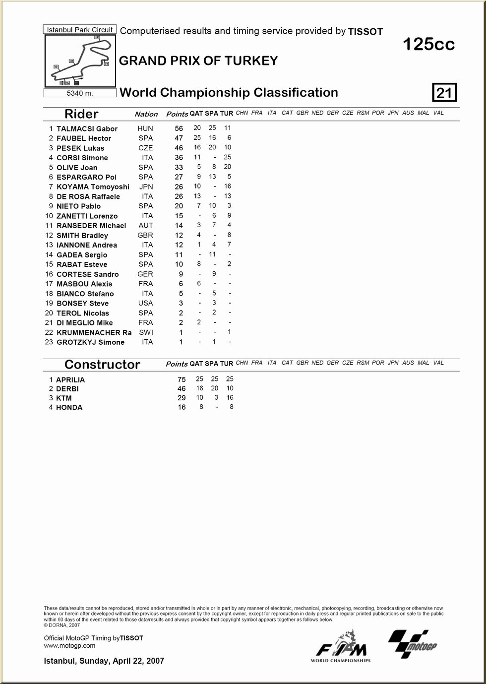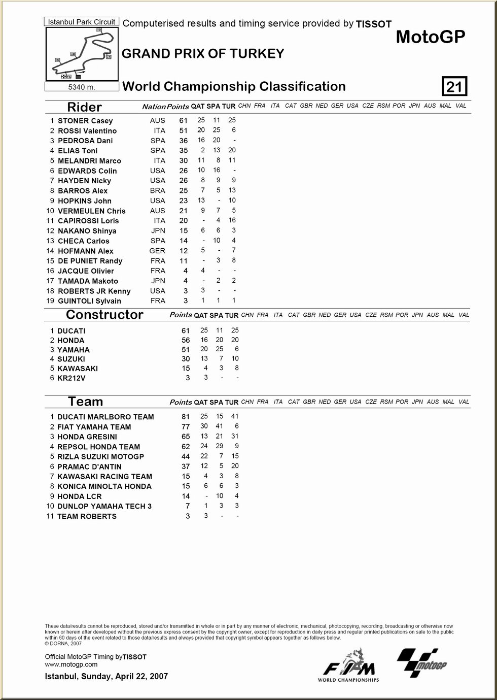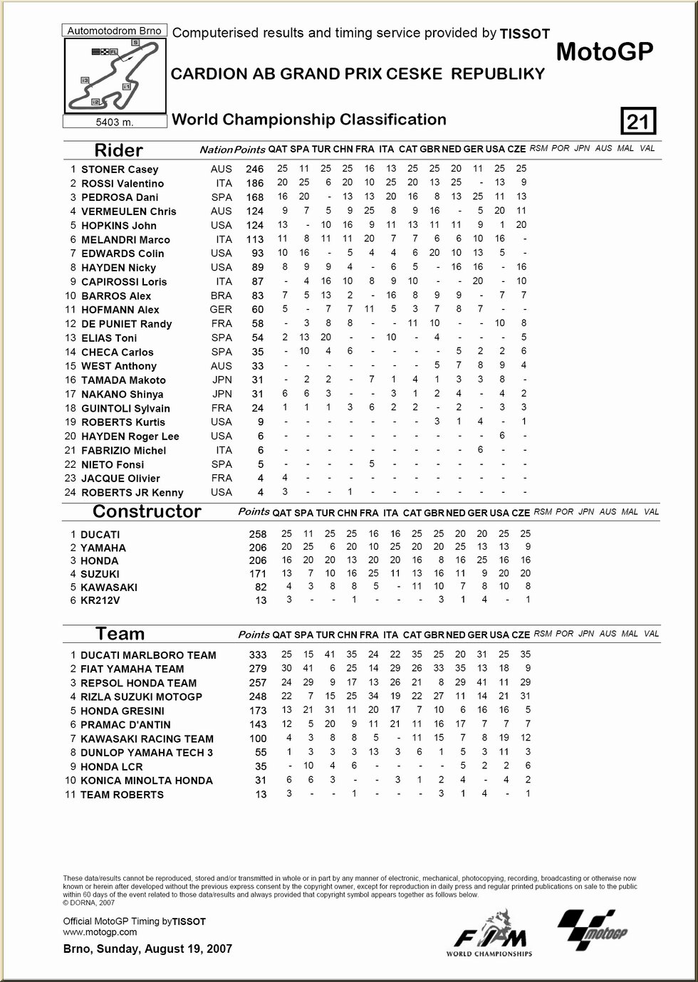 Moto GP : résultat - classement |