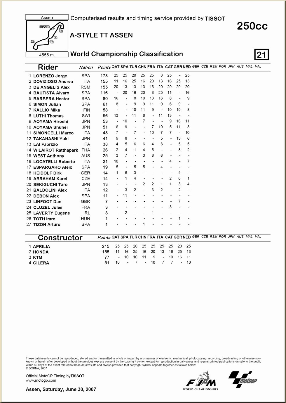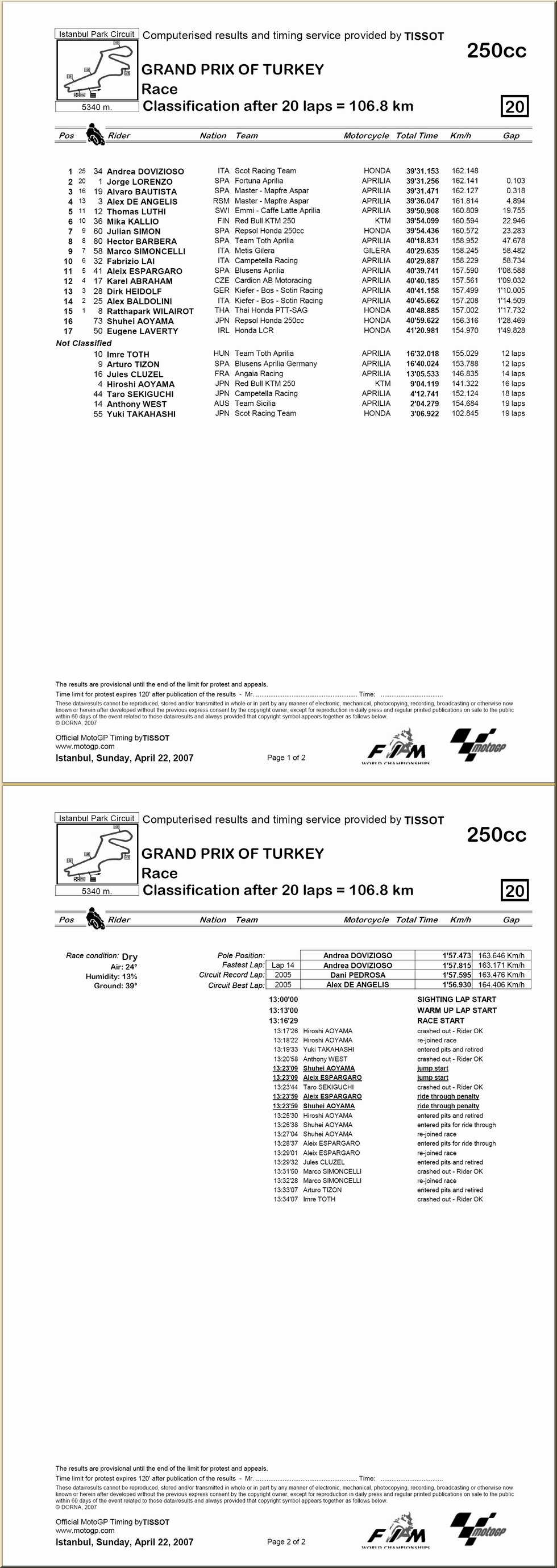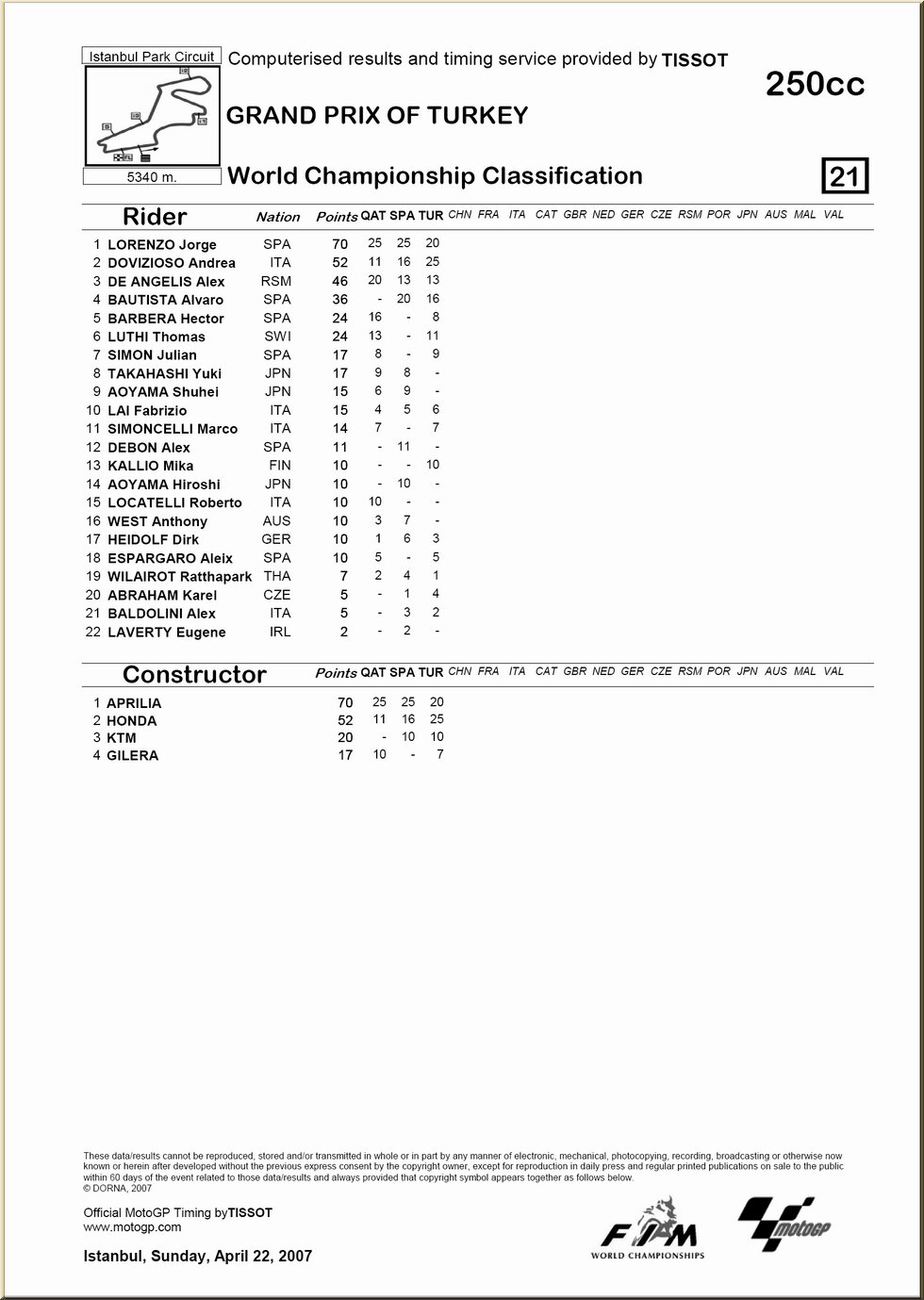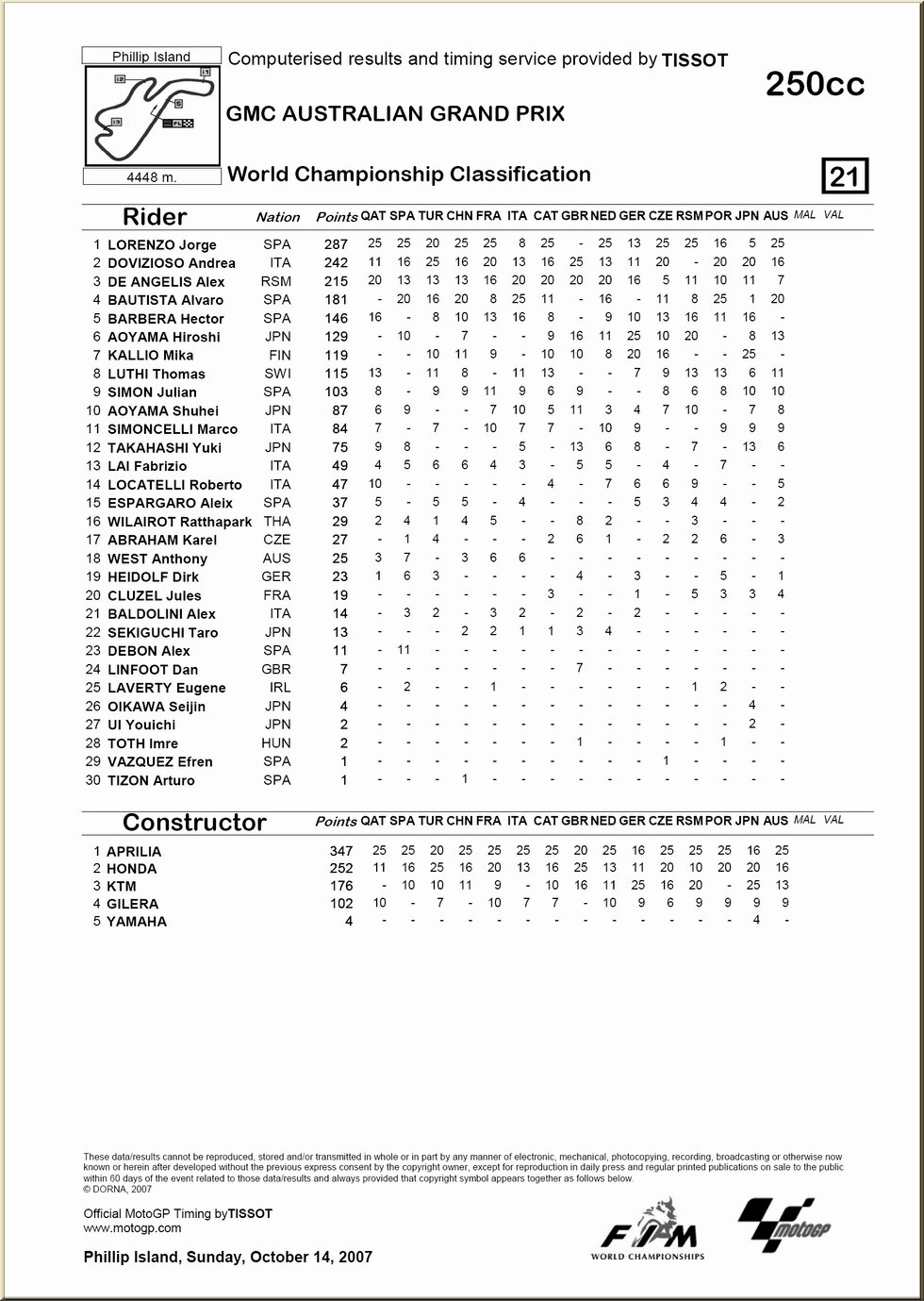Moto GP : résultat - classement |