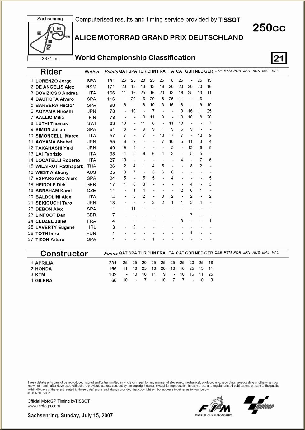 10. ALLEMAGNE, Sachsenring |