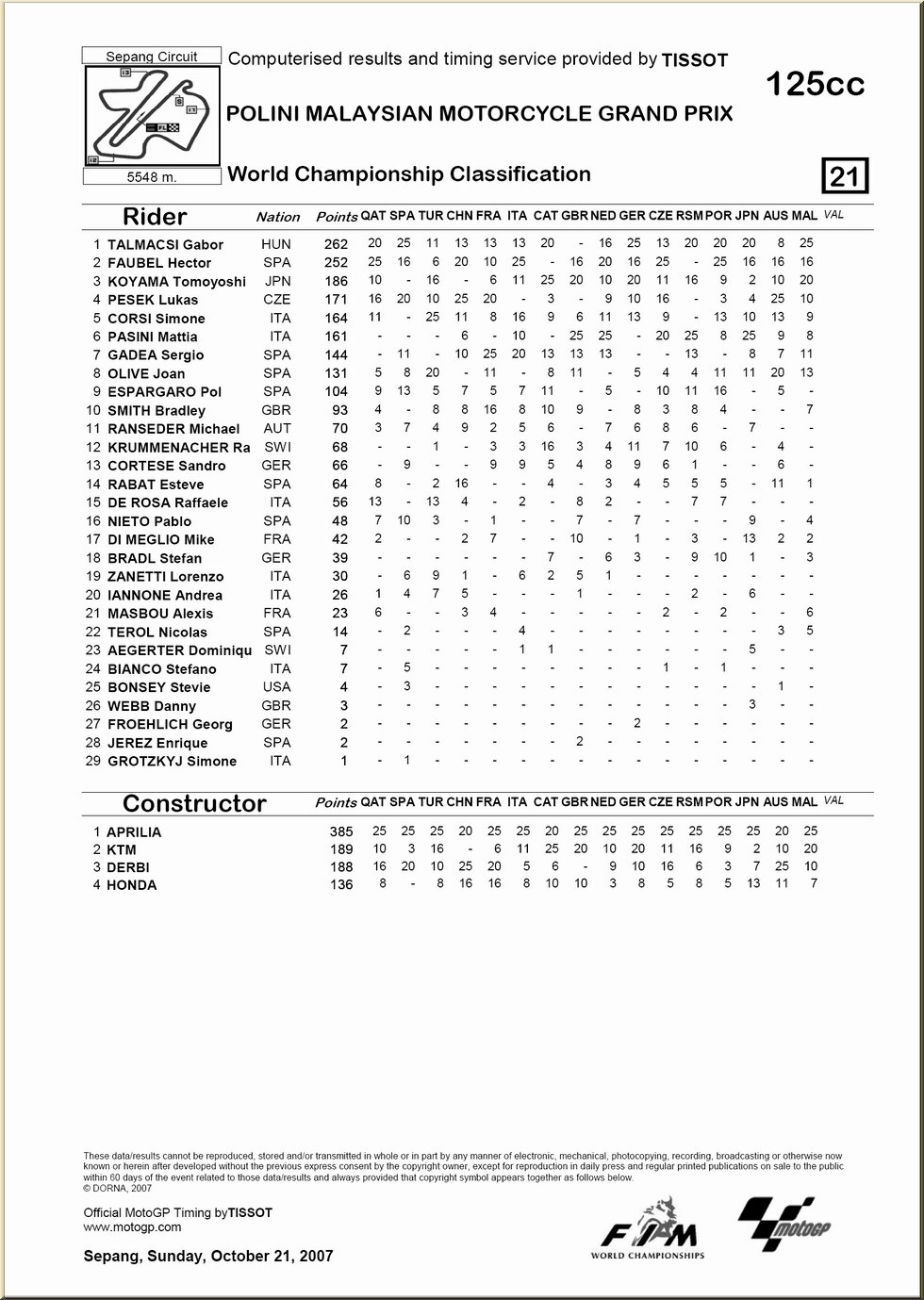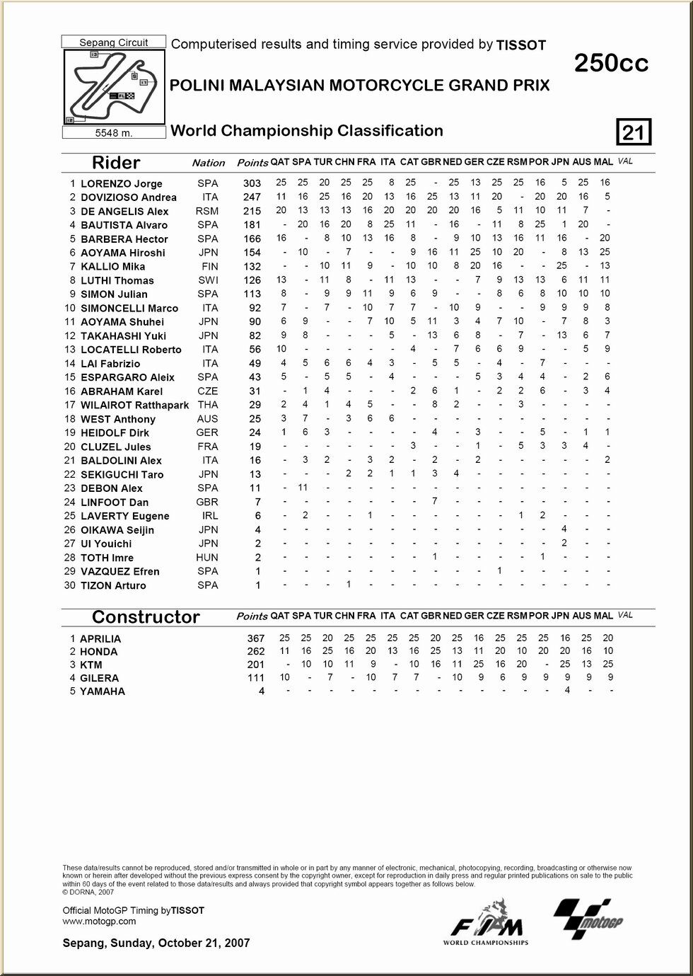 | 17. MALAISIE, Sepang |