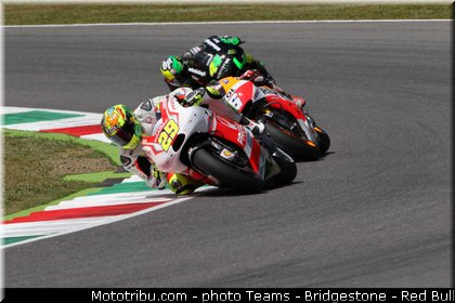 | Mal parti Dani Pedrosa remonte à la 4ème position, sans doute la meilleure qu'il puisse obtenir (hors chute) car l'écart de 5 secondes avec Valentino Rossi est conséquent... d'autant plus qu'Andrea Iannone n'a pas dit son dernier mot. |
