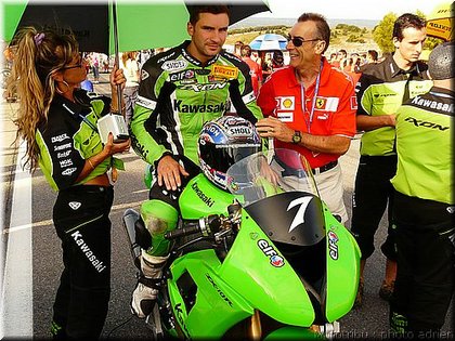 | sur le podium E. Nigon et C. Bourgeois responsable Kawasaki Sport |