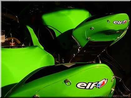 | Mme Kirino pdg de Kawasaki France avec Patrick Maccio responsable de la coupe Kawasaki Moto Revue et Sébastien Guilhot de la société Elf |