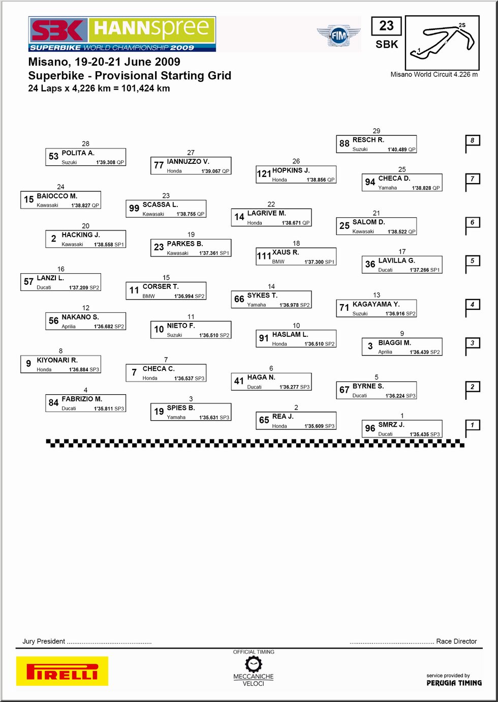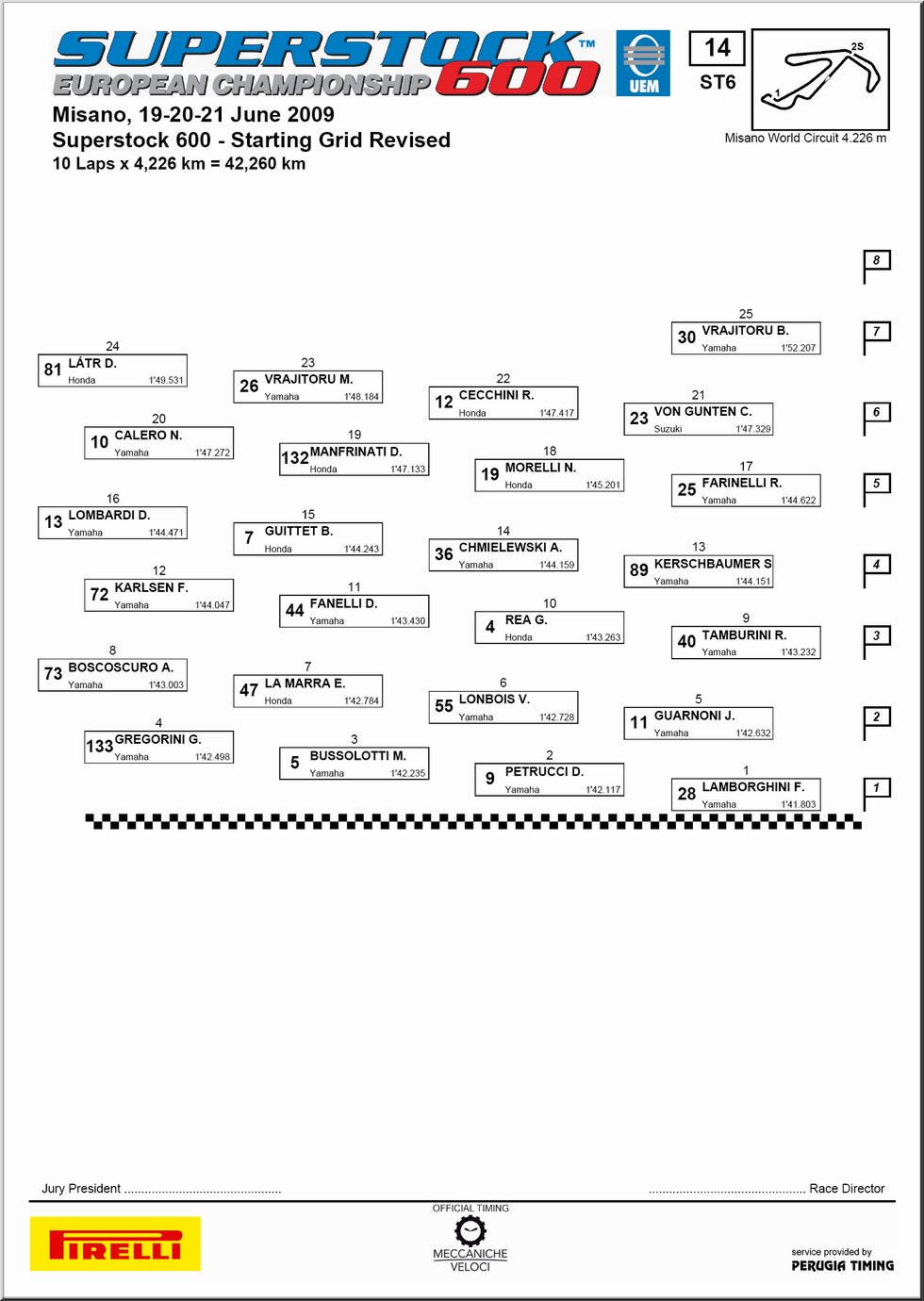 | Les grilles de départ : Superbike - Supersport - Superstock 1000 - Superstock 600 | ||||