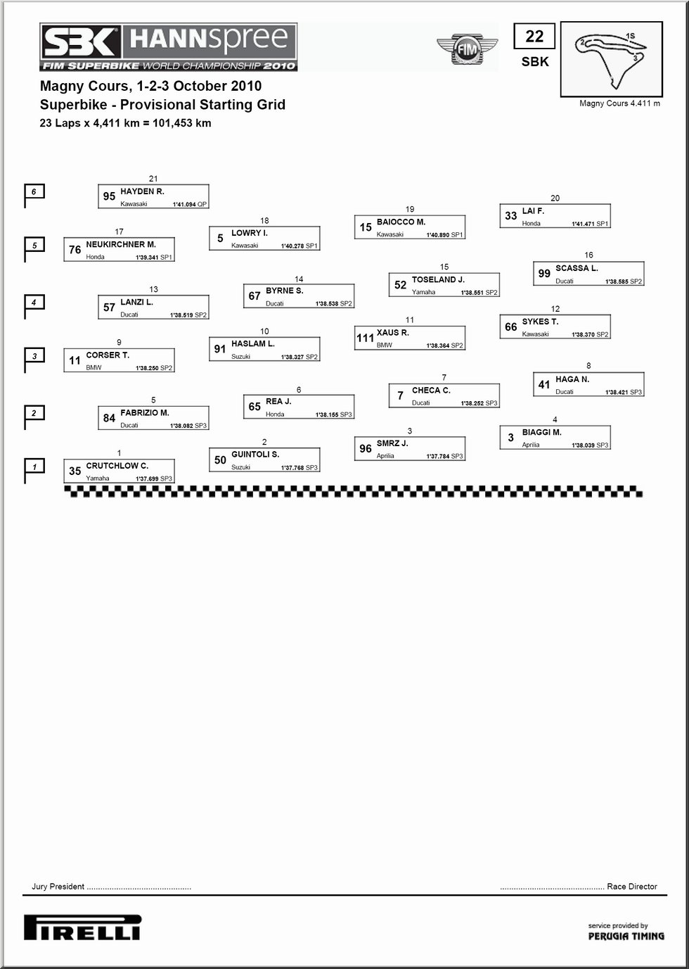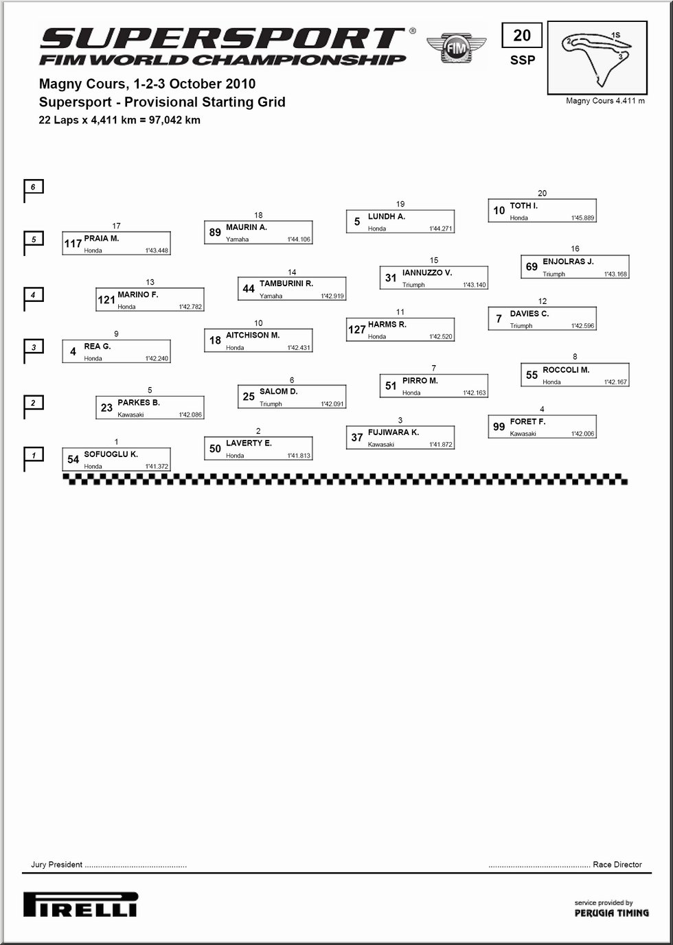 | Les grilles de départ : Superbike - Supersport - Superstock 1000 - Superstock 600 | ||||||||||