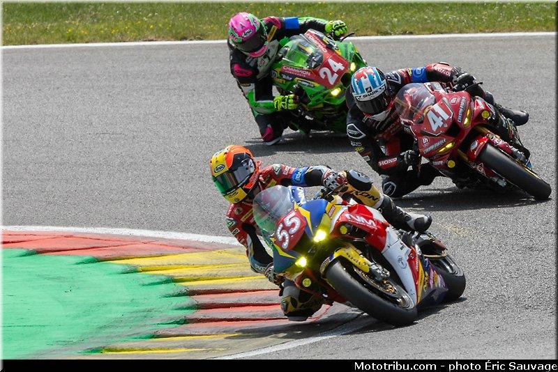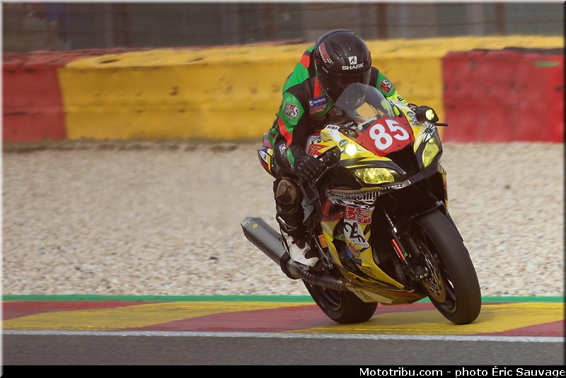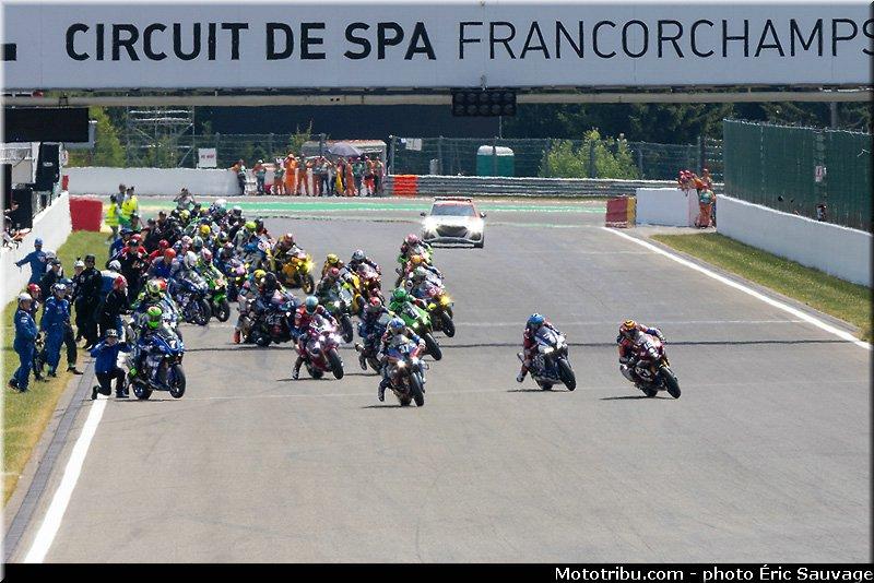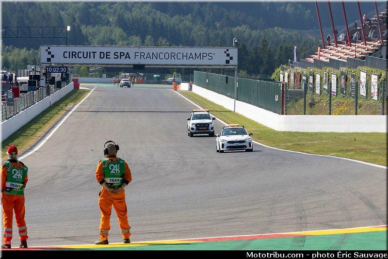 Énergie endurance 91 chute dès le 3eme tour. Le pilote se relève mais la moto est fortement endommagée. KM99 chute en haut du Raidillon. La moto traverse la piste pour échouer sur les vibreurs. Sacré footing pour Bastien Mackels pour aller la récupérer. Le safety-car annoncé n’entre finalement pas en piste.