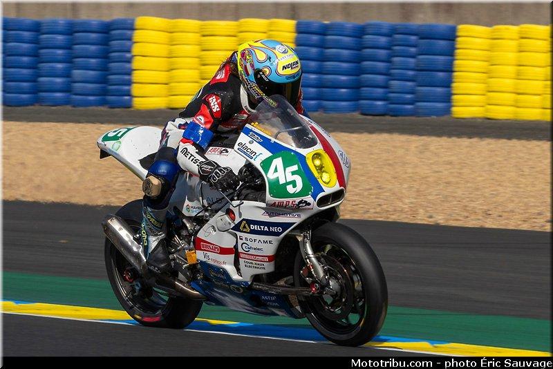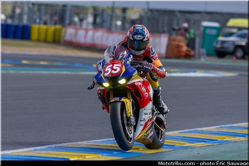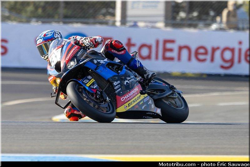 C’est ce qui arrive notamment 1 à Gregg Black (Yoshimura SERT Motul) au Garage Vert qui repart avant de s’arrêter dans l’échappatoire du chemin aux bœufs.C’est 9 Kenny Foray qui le ramène au stand en le « tractant ». Les quatre séances connaissent le même déroulé.