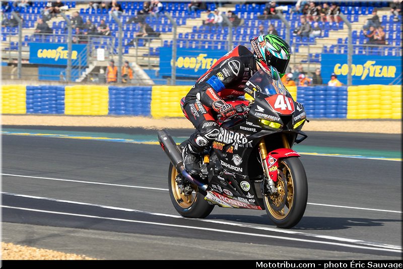 Selon les couleurs de brassards, en SST, National Motos Honda, Tecmas MRP BMW Racing Team et Chromeburner RAC41 Honda.