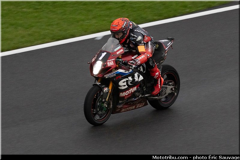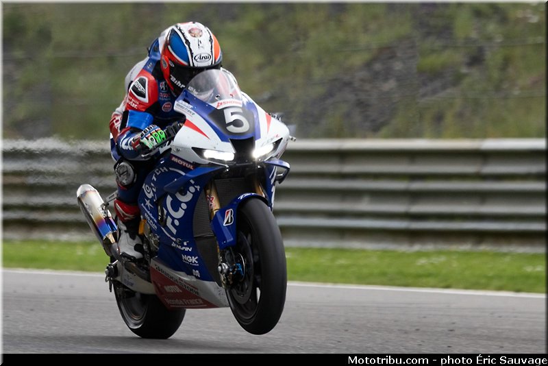Alors que BMW Motorrad World Endurance Team avait pris le commandement, au début de la quatrième heure, c’est le déluge. Cela ne dure qu’environ une dizaine de minutes mais la piste est détrempée.