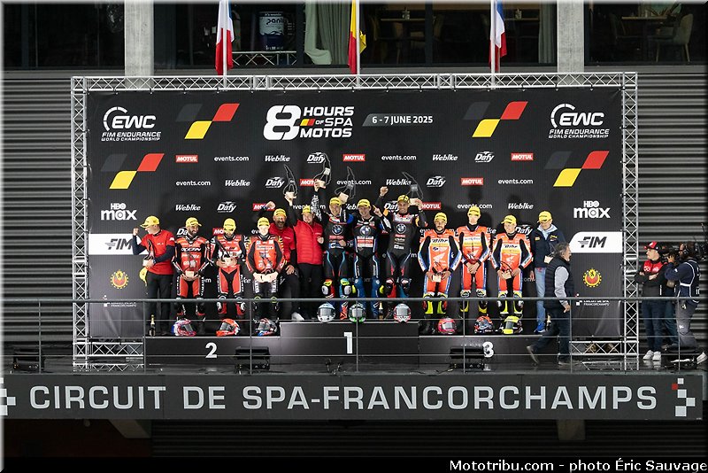 Champion MRP Tecmas, pour la catégorie SST, a un tour d’avance suivi de quatre autres candidats au podium, National Motos Honda FMA, Team 18 Pompiers Igol CMS Motostore, Wojcik Racing Team #777 SST et Team Étoile, dans le même tour.