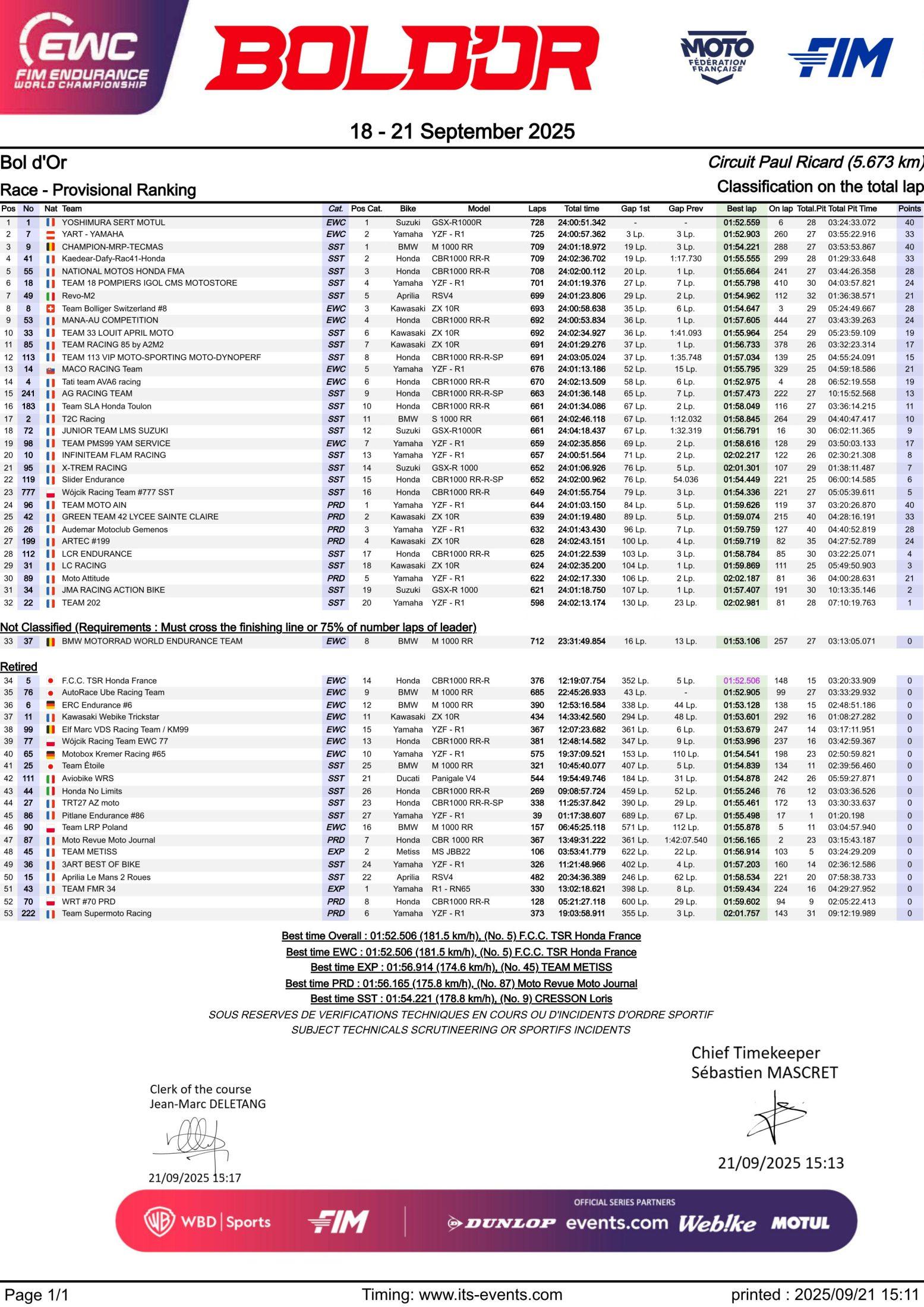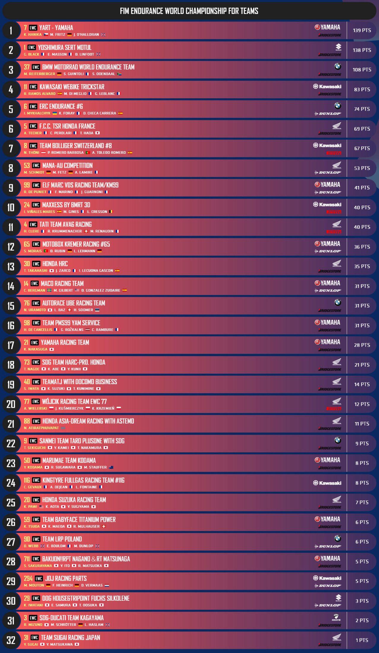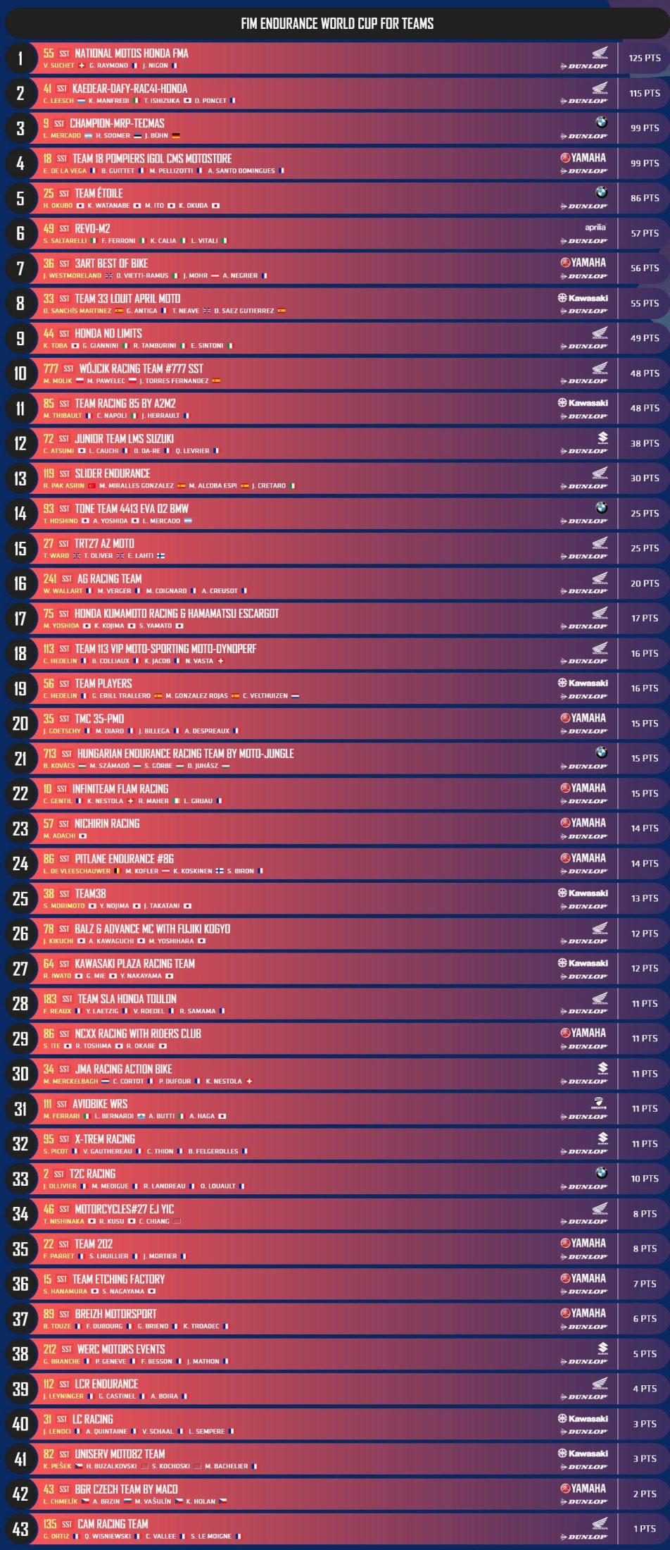 Bol d’Or Endurance Endurance 2025 Endurance 2025 - 4. France, Bol d’Or Sport Vitesse ENDURANCE – France, Bol d’Or, les résultats et les classements 21 septembre 20255 octobre 2025 Adrien 6457 Vues France, Bol d’Or, les résultats et les classements. Les résultats et les classements des autres courses Abonnez-vous à la newsletter Mototribu Veuillez laisser ce champ vide Merci pour votre abonnement
