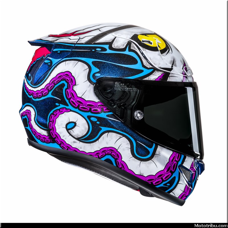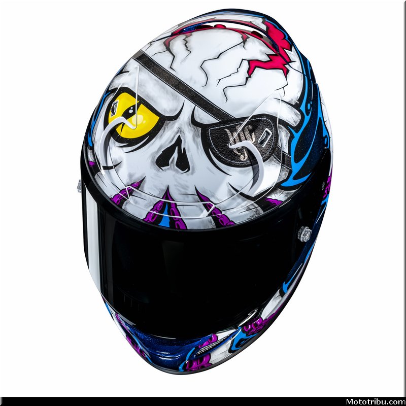 Pour 2025 HJC nous réserve quelques surprises et démontre pour l’occasion sa capacité à bouger les lignes en matière de design. Après un audacieux F71 Monkey DJ dévoilé fin 2024, le fabricant coréen lève le voile sur un graphisme tout aussi décalé sur une base de RPHA 12 : la version Kraken. Avec cette proposition aucune ambiguïté sur la piraterie comme thème principal de cette nouvelle décoration.
