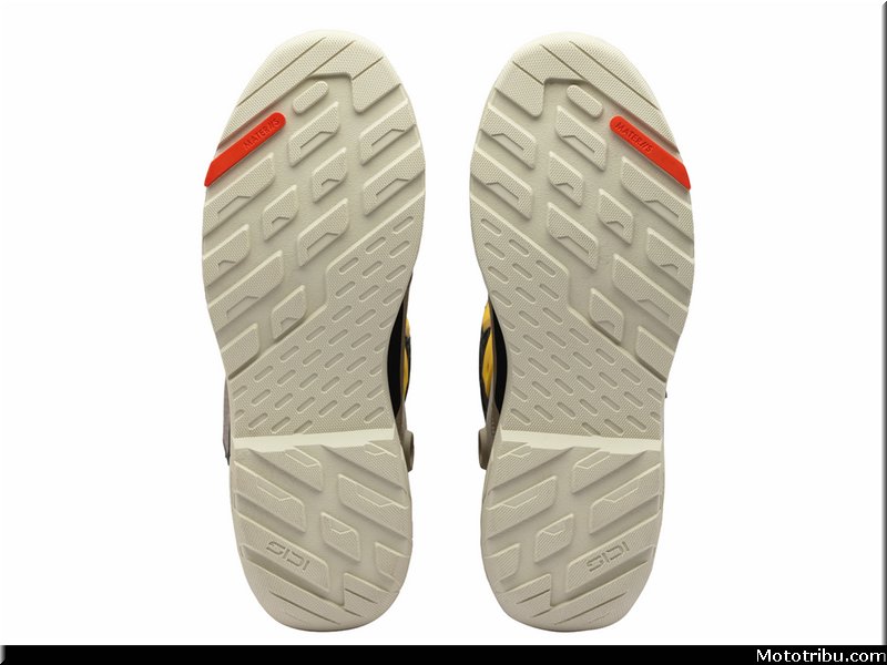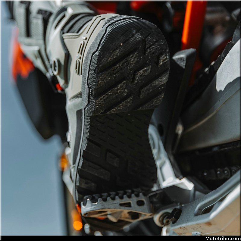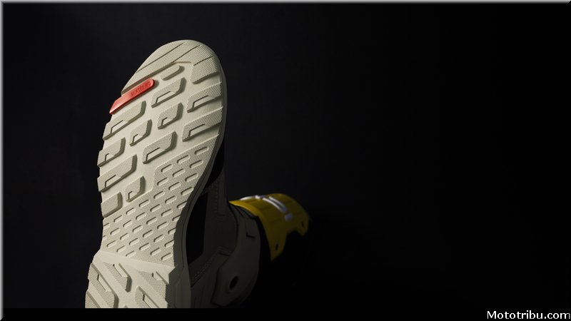 Le dessin de la semelle délivre un maximum de grip sur les repose-pieds comme au sol, ainsi qu’une résistance élevée à l’abrasion.