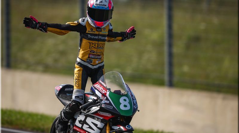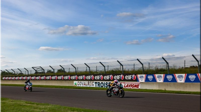Derrière, Hugo CLERE (Honda Tati Team AVA6 Racing – Pirelli), auteur d’un départ depuis la 6e place, entame une belle remontée. Il prend d’abord l’ascendant sur Loris CRESSON (Tecmas BMW Motorrad France – Michelin), puis sur AEBI, pour s’installer en 4e position. Il s’offre ensuite la 3e place au détriment de DE LA VEGA.