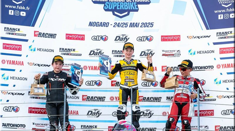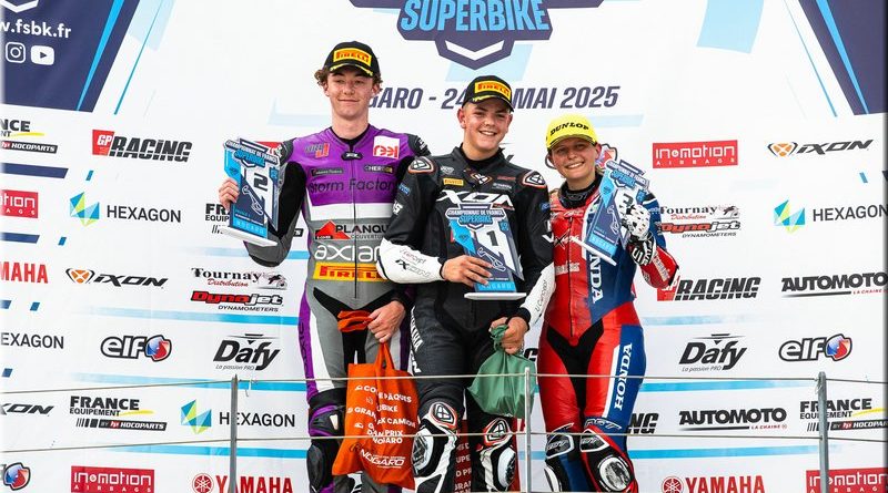 CAZARD s’impose, devant CAILLET, 2e. Livio MIRABEL (Yamaha – Michelin) complète le podium en montant sur la 3e marche.