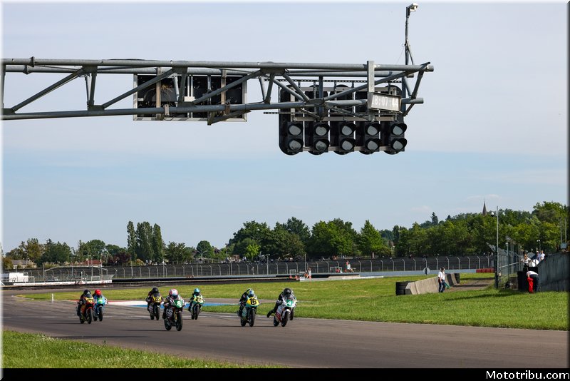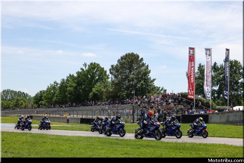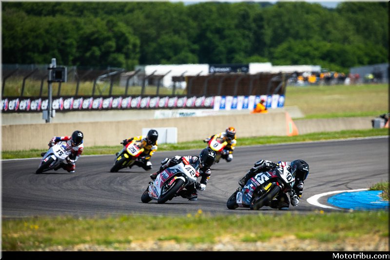 Au départ, Jules BERCOT (Yamaha FT Racing Academy – Michelin), parti en pole, conserve l’avantage. Derrière lui, Noa SOURDON (Yamaha FT Racing Academy – Michelin), auteur d’un excellent envol depuis la 4e position, se place immédiatement dans sa roue. Le pilote #5 se montre pressant.
