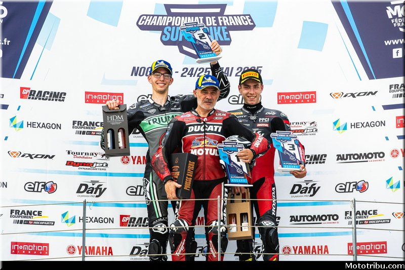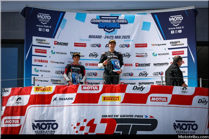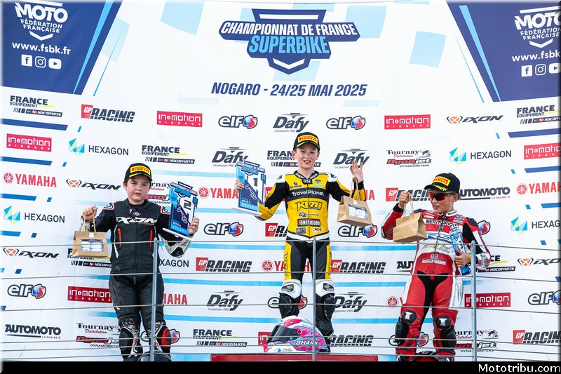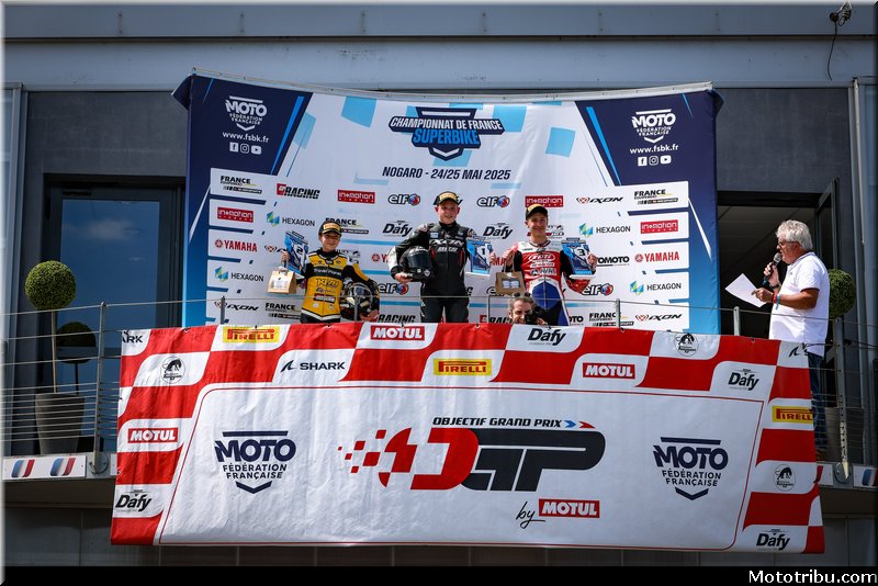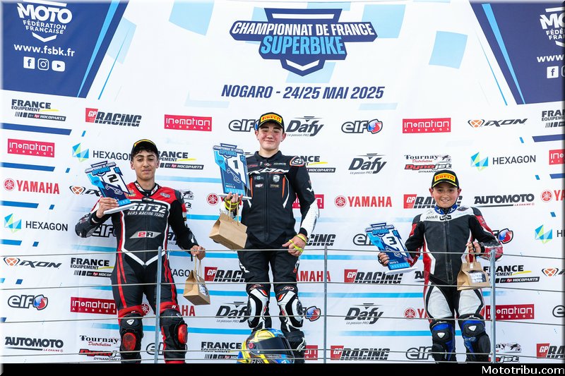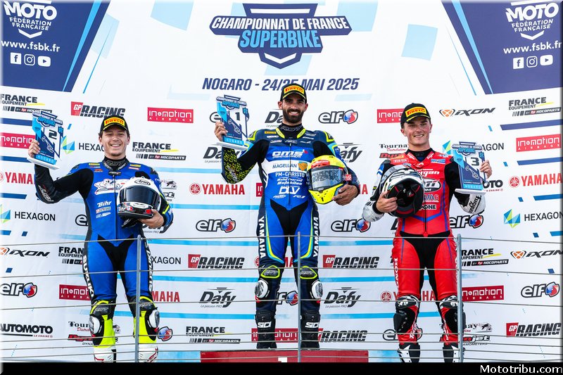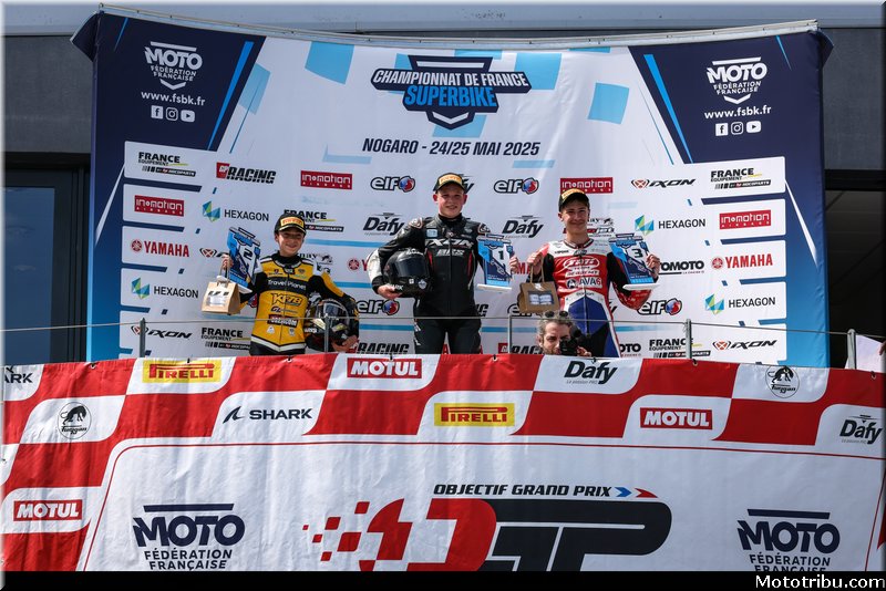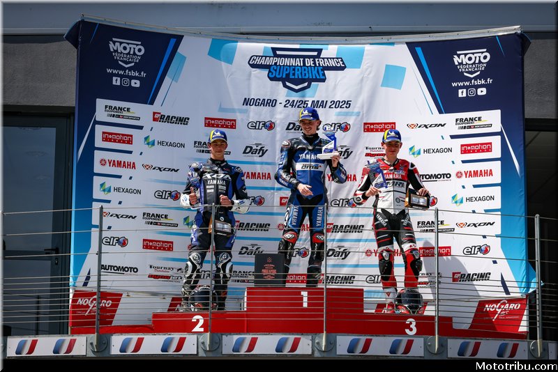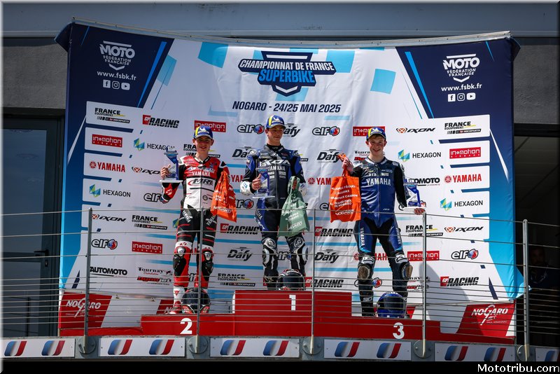 CAZARD s’impose, devant CAILLET, 2e. Livio MIRABEL (Yamaha – Michelin) complète le podium en montant sur la 3e marche.