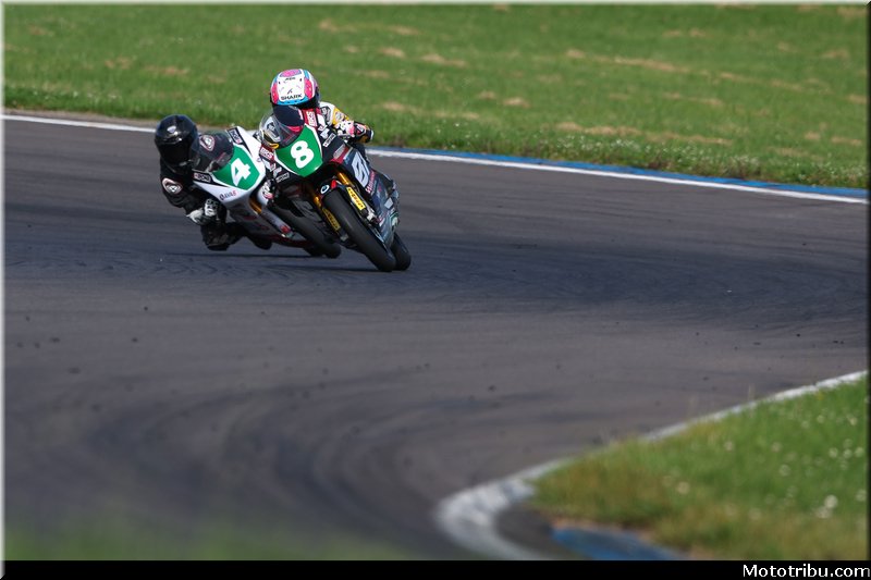 Dès le départ, le duo PEUGEOT / PEUGEOT (F2) prend les commandes de la course. Les locaux LEGLISE / CESCUTTI (F600), auteur de la pole position, restent dans leur sillage, 2e. Derrière, un écart de près de deux secondes se creuse avec VINET / VINET (F600), 3e, en embuscade derrière le duo de tête.
