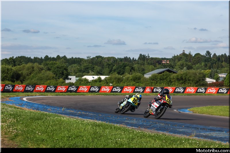 À l’extinction des feux, Léandre MARTINEZ (Beon BRS – Pirelli) confirme sa belle forme tout au long du week-end en réalisant le holeshot. Mais dans sa roue, Milan ENJOLRAS (Beon Tati Team AVA6 Racing – Pirelli) ne compte pas lui laisser le moindre répit. Le pilote #4 exerce une pression constante sur le leader dès les premiers tours.