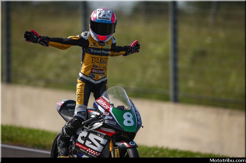 Derrière, Hugo CLERE (Honda Tati Team AVA6 Racing – Pirelli), auteur d’un départ depuis la 6e place, entame une belle remontée. Il prend d’abord l’ascendant sur Loris CRESSON (Tecmas BMW Motorrad France – Michelin), puis sur AEBI, pour s’installer en 4e position. Il s’offre ensuite la 3e place au détriment de DE LA VEGA.