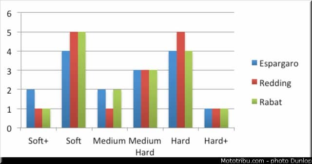 Justement Pol Espargaro semble être un dur au coeur tendre car c’est cette gomme qui a eu sa préférence tout au long de la saison tandis que l’infortuné Scott Redding préfère jouer les gommes dures.
