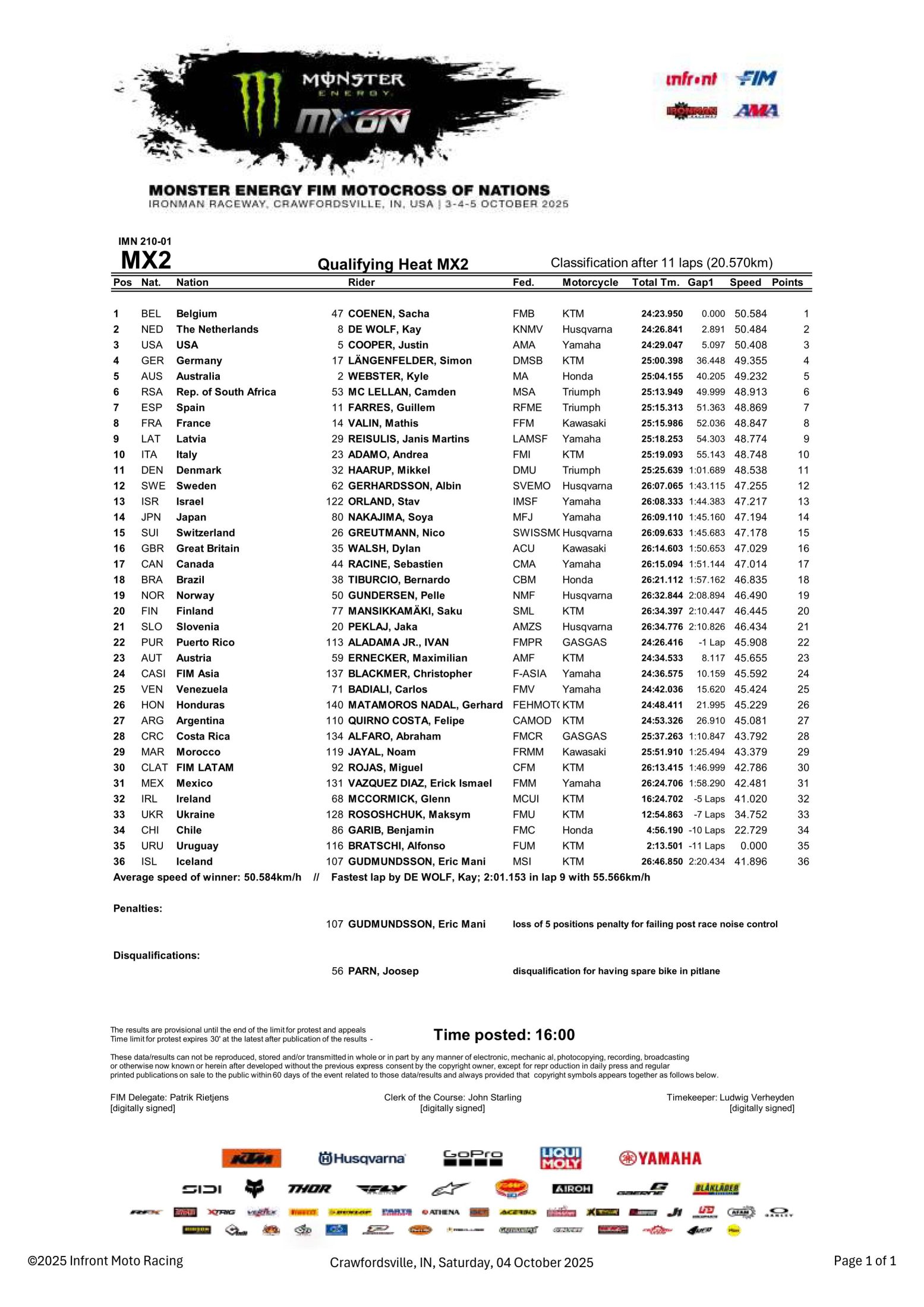 MOTOCROSS des NATIONS – USA, Ironman, le résumé vidéo des qualifications et les résultats