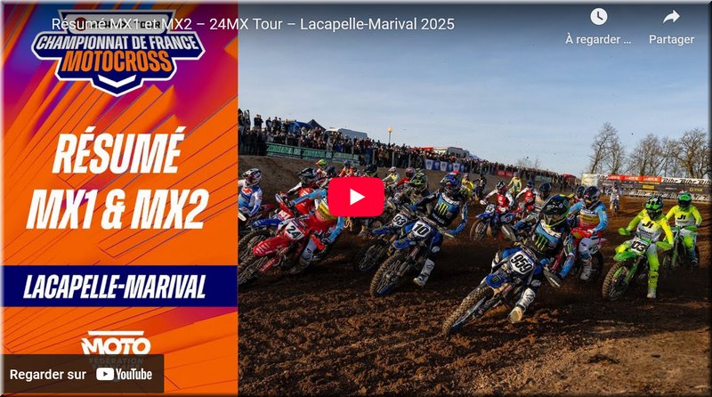 FFM Motocross Motocross 2025 MX - SX MX France 2025 MX France 2025 - 1. Lacapelle Marival MX SX 2025 Sport Sport Terre Vidéo MOTOCROSS – Lacapelle Marival, les résumés vidéo MX1 et MX2 17 février 2025 Adrien 5063 Vues Les résumés vidéo MX1 et MX2 de la première épreuve du championnat de France de Motocross à Lacapelle Marival. Abonnez-vous à la newsletter Mototribu Veuillez laisser ce champ vide Merci pour votre abonnement