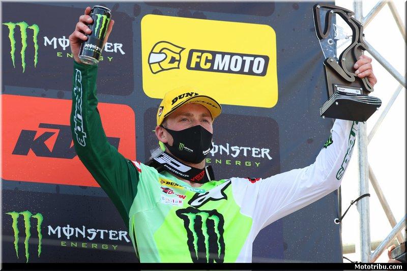 Romain Febvre a signé le record du tour dans chacune des deux manches du MXGP de Russie, première épreuve du Championnat du Monde, décrochant son premier podium de la saison pour le compte du Monster Energy Kawasaki Racing Team. Ivo Monticelli a été moins en réussite sur le circuit d’Orlyonok, se retirant après une chute en première manche.