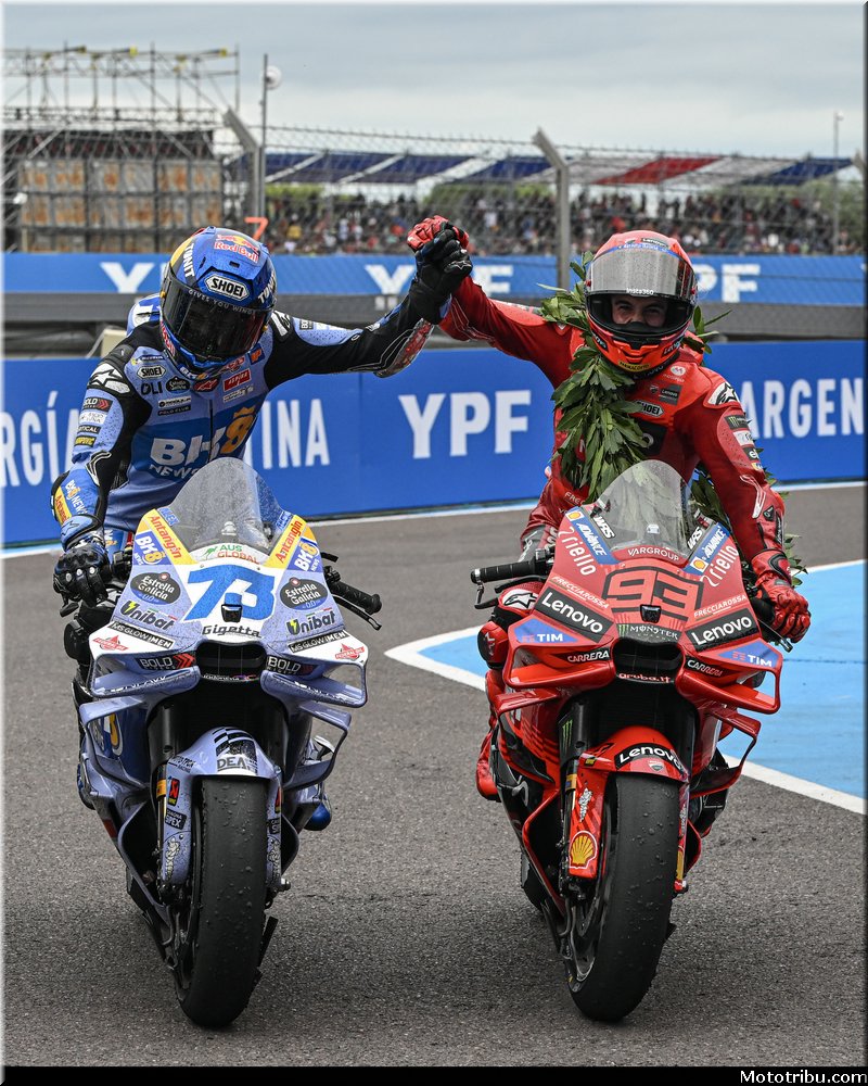 Les records ont continué à tomber lors du Gran Premio YPF Energía de Argentina 2025, à nouveau remporté par Marc Marquez devant Alex Marquez, tandis que Franco Morbidelli (Pertamina Enduro VR46 Racing Team) complétait le podium. Le pilote Ducati a signé le record du tour en course en 1’38.243 et a établi la durée la plus courte du Grand Prix (41’11.100), améliorant de 25.544 secondes la précédente référence de Valentino Rossi (Yamaha) en 2015.