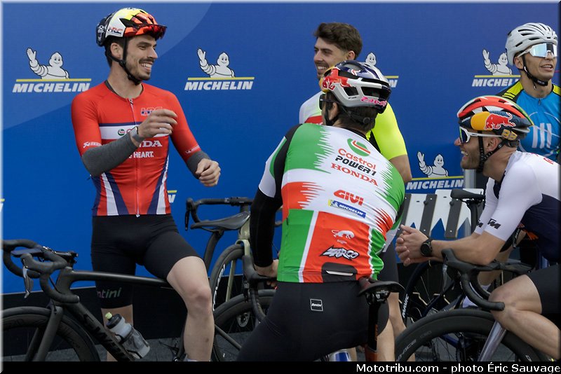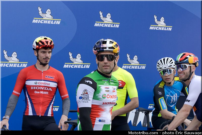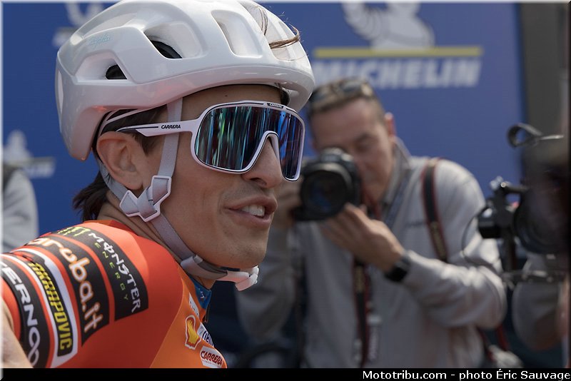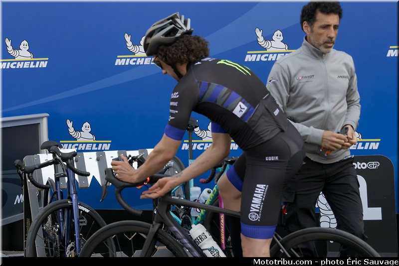 Chaque jeudi précédent le début des Grands Prix et durant la journée presse une animation est proposée à certains pilotes. Aujourd’hui quelques-uns d’entre eux se sont retrouvés autour d’une passion qui anime beaucoup de pilotes : le vélo. Johann Zarco, Marc Marquez, Joan Mir et Alex Rins entre autres se sont retrouvés pour faire tourner les jambes sous l’oeil et l’objectif d’Éric Sauvage.