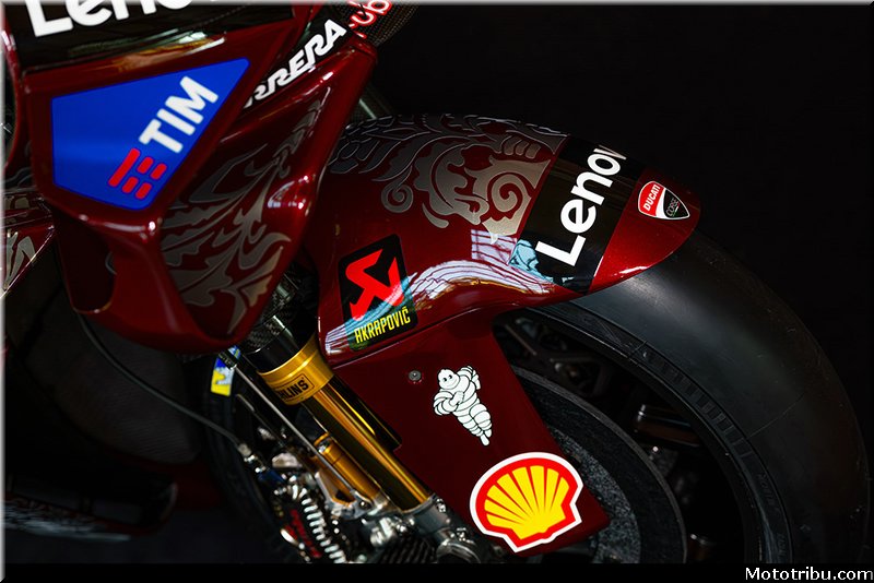Leurs Desmosedici GP arborent un lion et un renard inspirés de l’armure du célèbre leader de Léonard de Vinci, représentant la synthèse parfaite entre la force et la ruse, comme l’enseigne Machiavel dans « Le Prince » : pour gagner, il faut à la fois la force du lion et la ruse du renard.