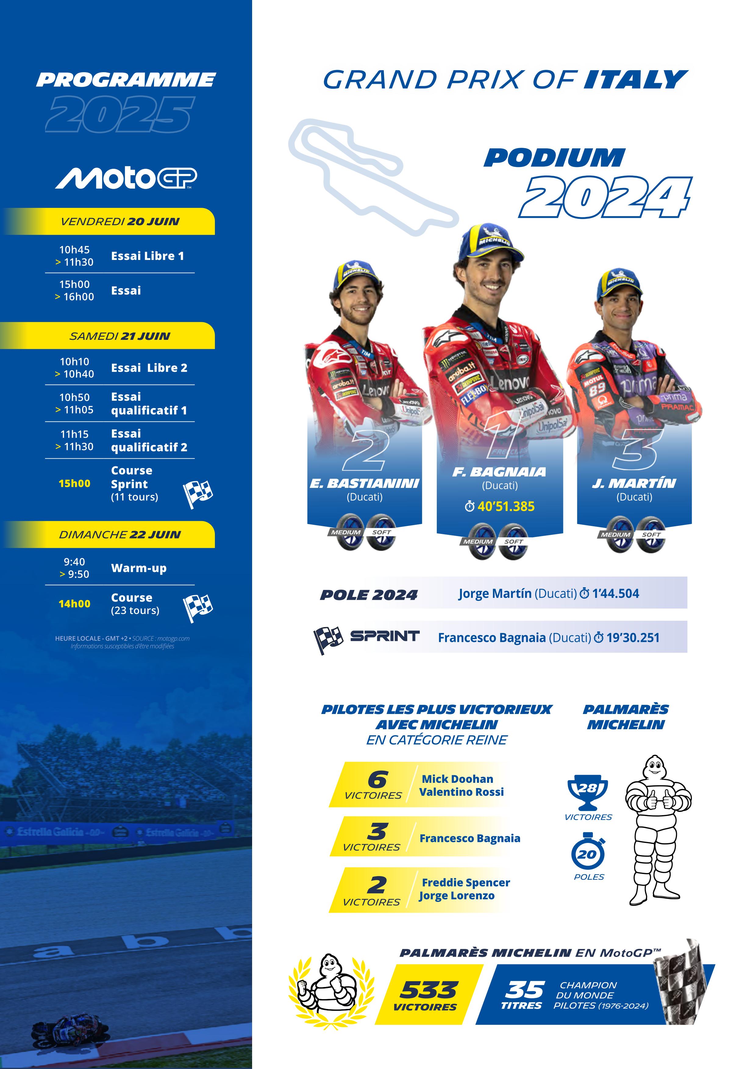 MotoGP MotoGP - Moto2 - Moto3 MotoGP 2025 MotoGP 2025 - 9. Italie Sport Sport Vitesse MotoGP – Italie, Mugello, le guide Michelin 20 juin 202522 juin 2025 Adrien 5622 Vues Le guide Michelin du Grand Prix d’Italie. Abonnez-vous à la newsletter Mototribu Veuillez laisser ce champ vide Merci pour votre abonnement