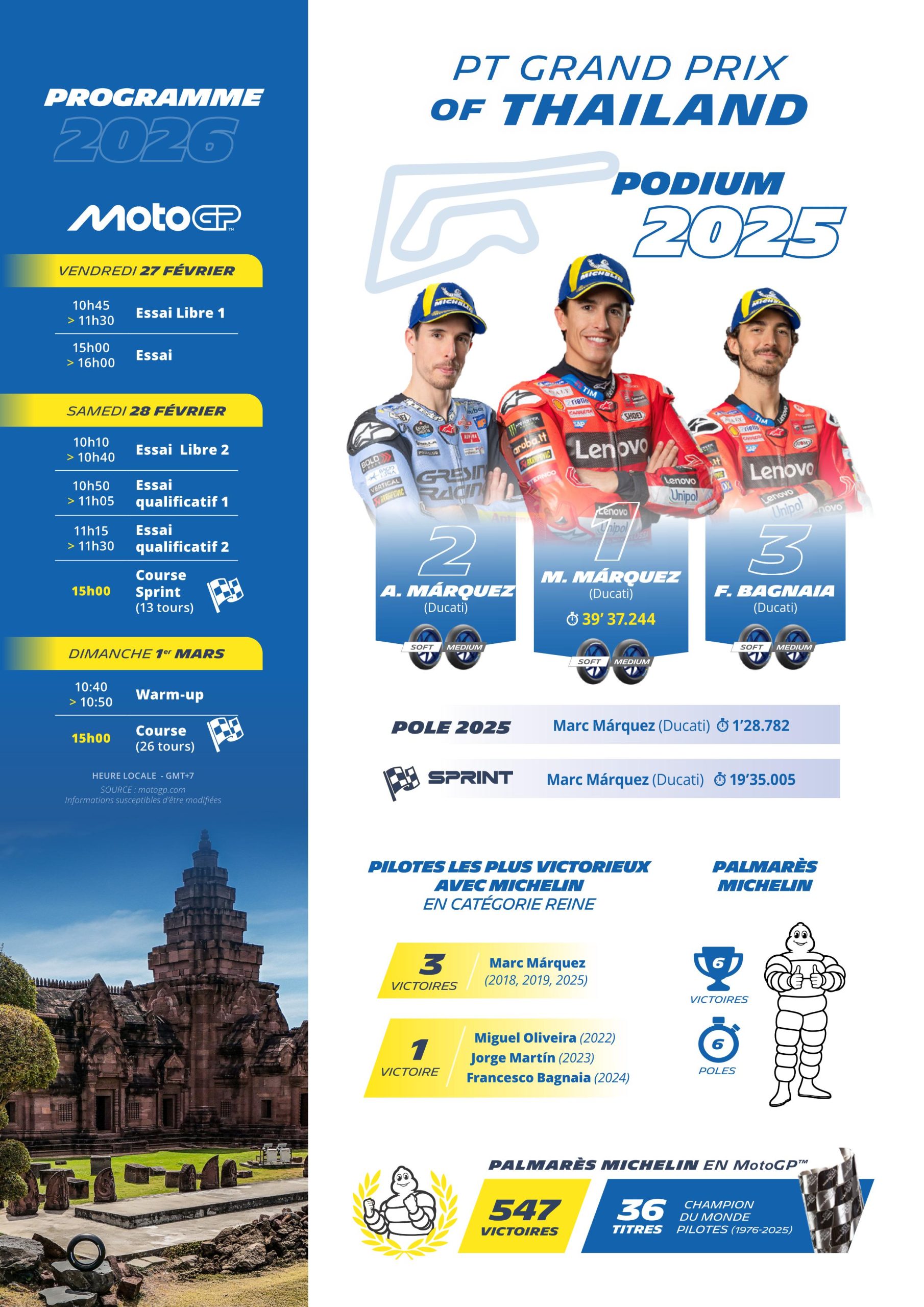 MotoGP MotoGP - Moto2 - Moto3 MotoGP 2026 MotoGP 2026 - 1. Thailande Sport Sport Vitesse MotoGP – Thailande, Buriram, le guide Michelin 26 février 20261 mars 2026 Adrien 5397 Vues Le guide Michelin du Grand Prix MotoGP de Thailande. Abonnez-vous à la newsletter Mototribu Veuillez laisser ce champ vide Merci pour votre abonnement