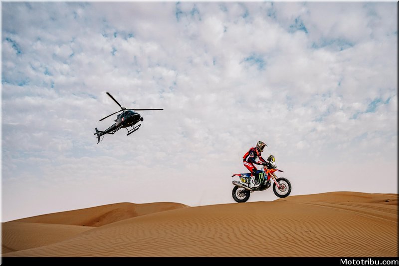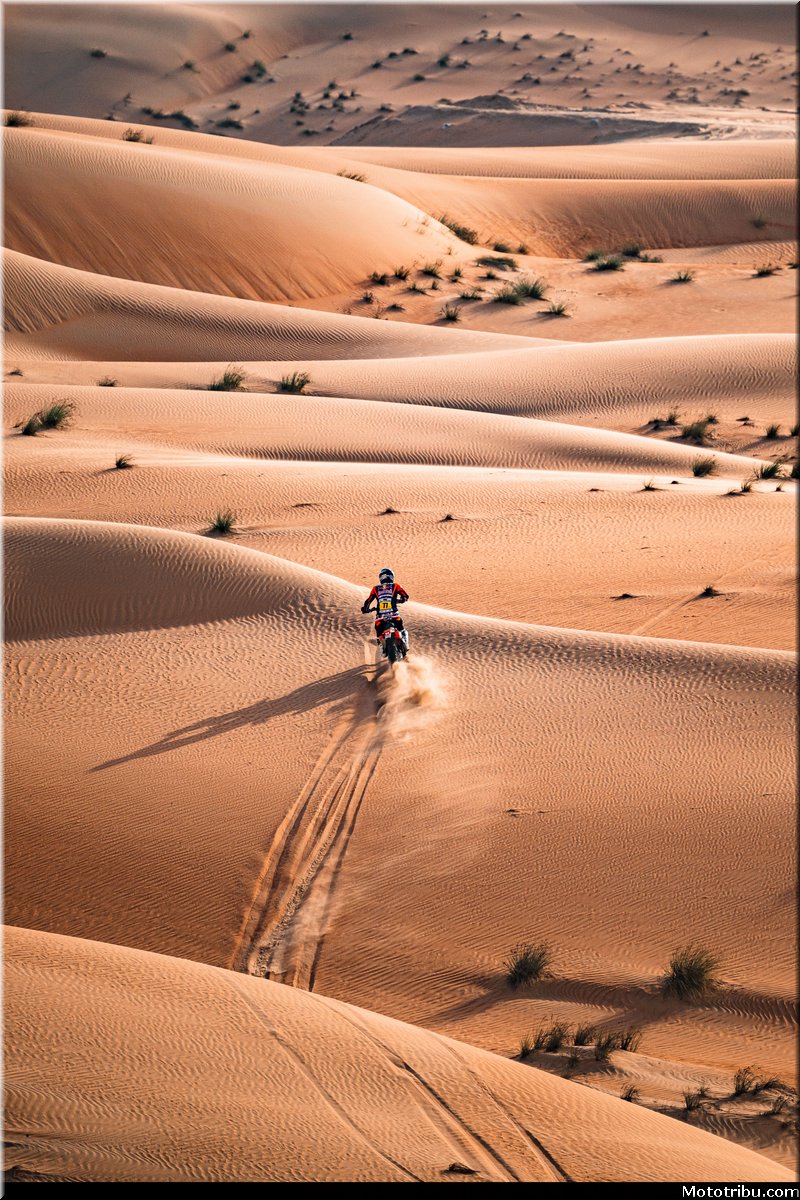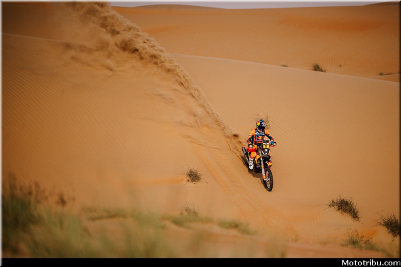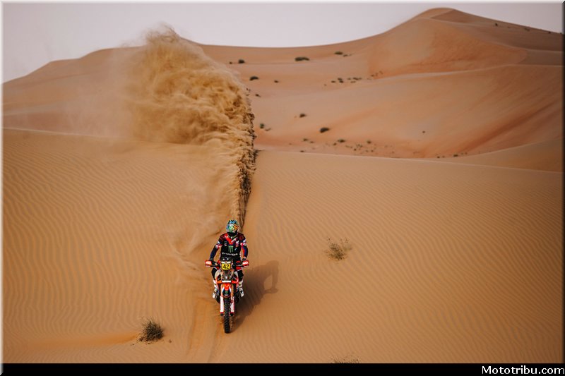 Le pilote KTM empêche Honda de signer un quadruplé puisqu’on retrouve derrière lui Ricky Brabec 3e (+2’36 »), Adrien Van Beveren 4e (+3’18 ») et Skyler Howes 5e (+3’40 »).