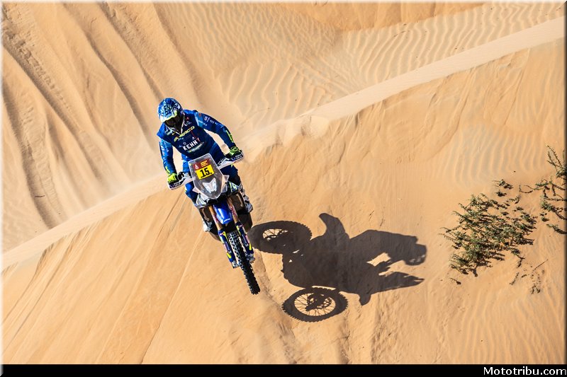 Il n’a rien lâché, a poussé la moto dans le sable jusqu’à la ligne d’arrivée, forçant l’admiration de ses pairs. Il perd plus d’une heure face à ses principaux concurrents.