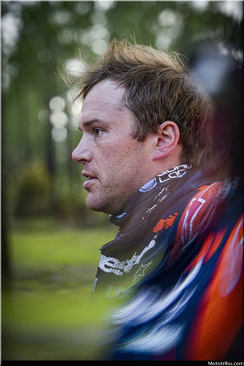 On aurait pu penser qu’une blessure à l’épaule, ainsi qu’une déchirure musculaire de 7 centimètres à la jambe, auraient refroidi les ambitions de Daniel Sanders (Red Bull KTM Factory Racing). Que n’étant pas encore remis à 100 % de l’intervention chirurgicale subie en Australie, peu après le Dakar, le champion du monde en titre roulerait sur la retenue ici.