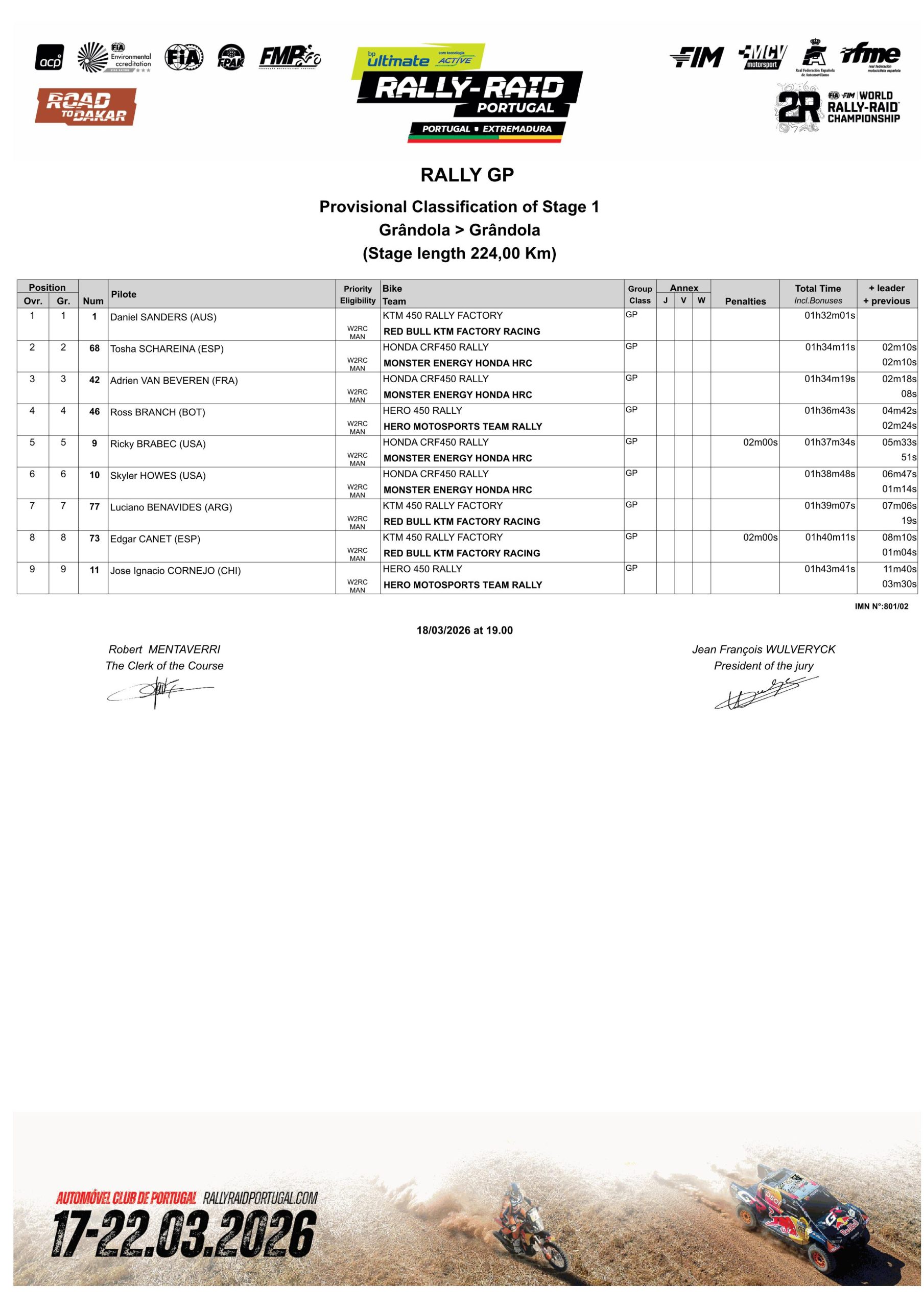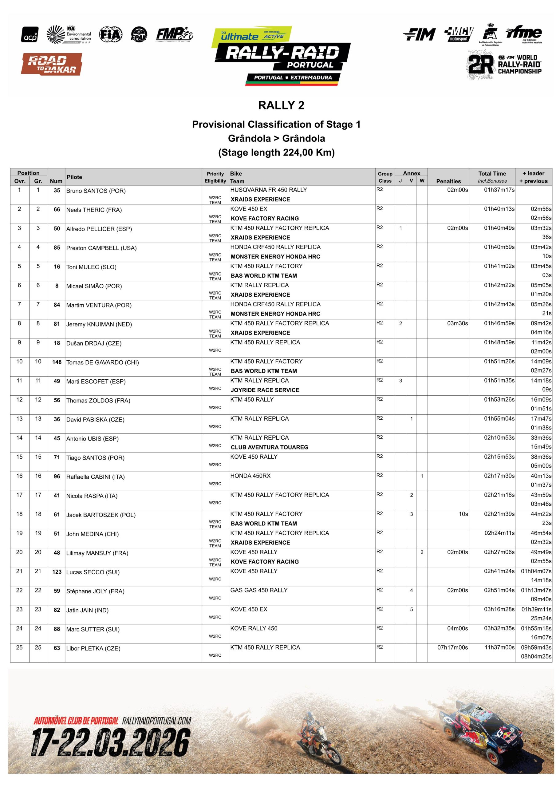 Le pilote Hero Ross Branch (4e, +4’42 »), les Honda de Ricky Brabec (6e, +5’33 ») et Skyler Howes (7e, +6’47 »), mais aussi les KTM de Luciano Benavides (8e, +7’06 ») et Edgar Canet (9e, +8’10 »), ont déjà du retard à combler.